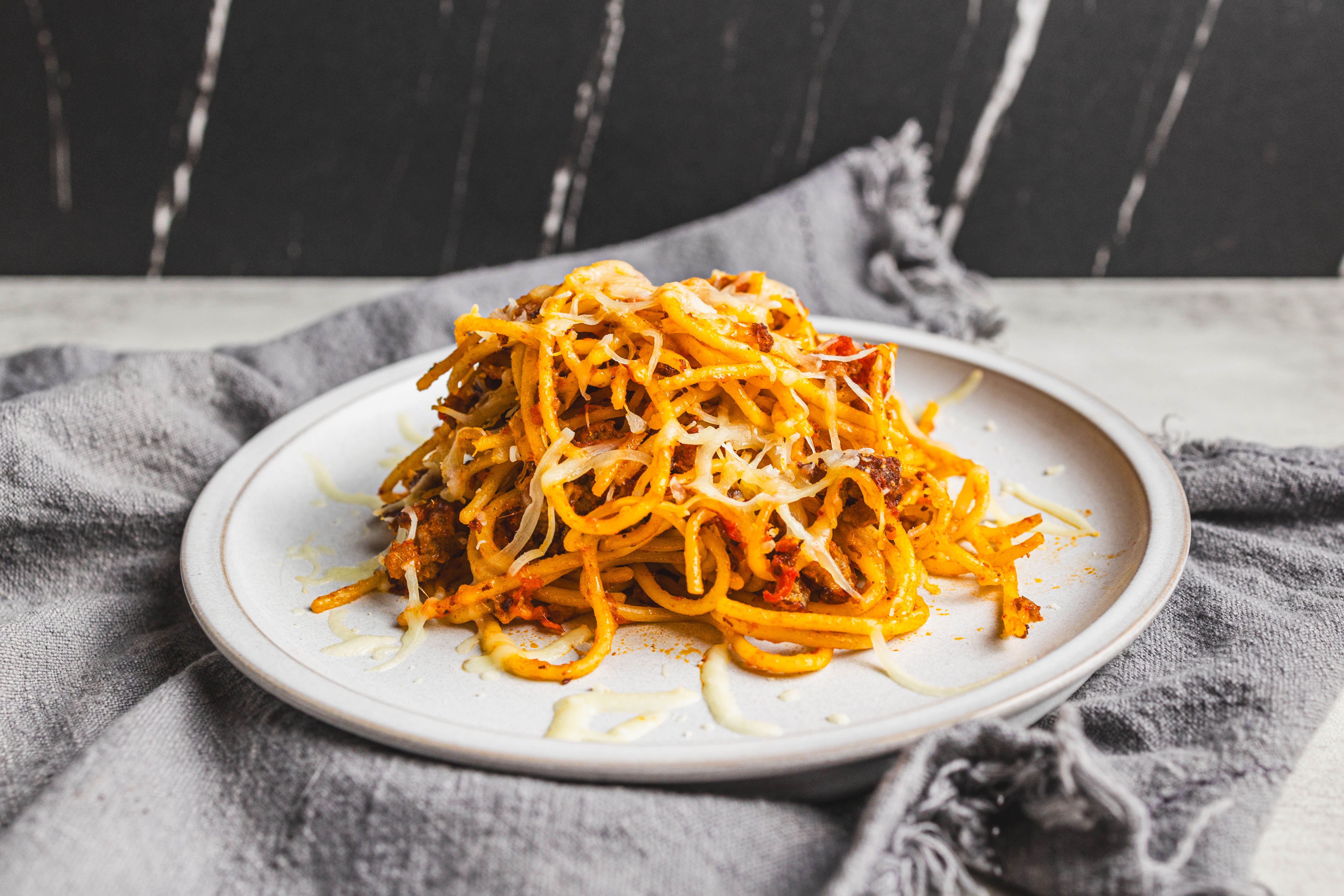 Step 5 -Add the cooked spaghetti to the sauce and stir to combine.