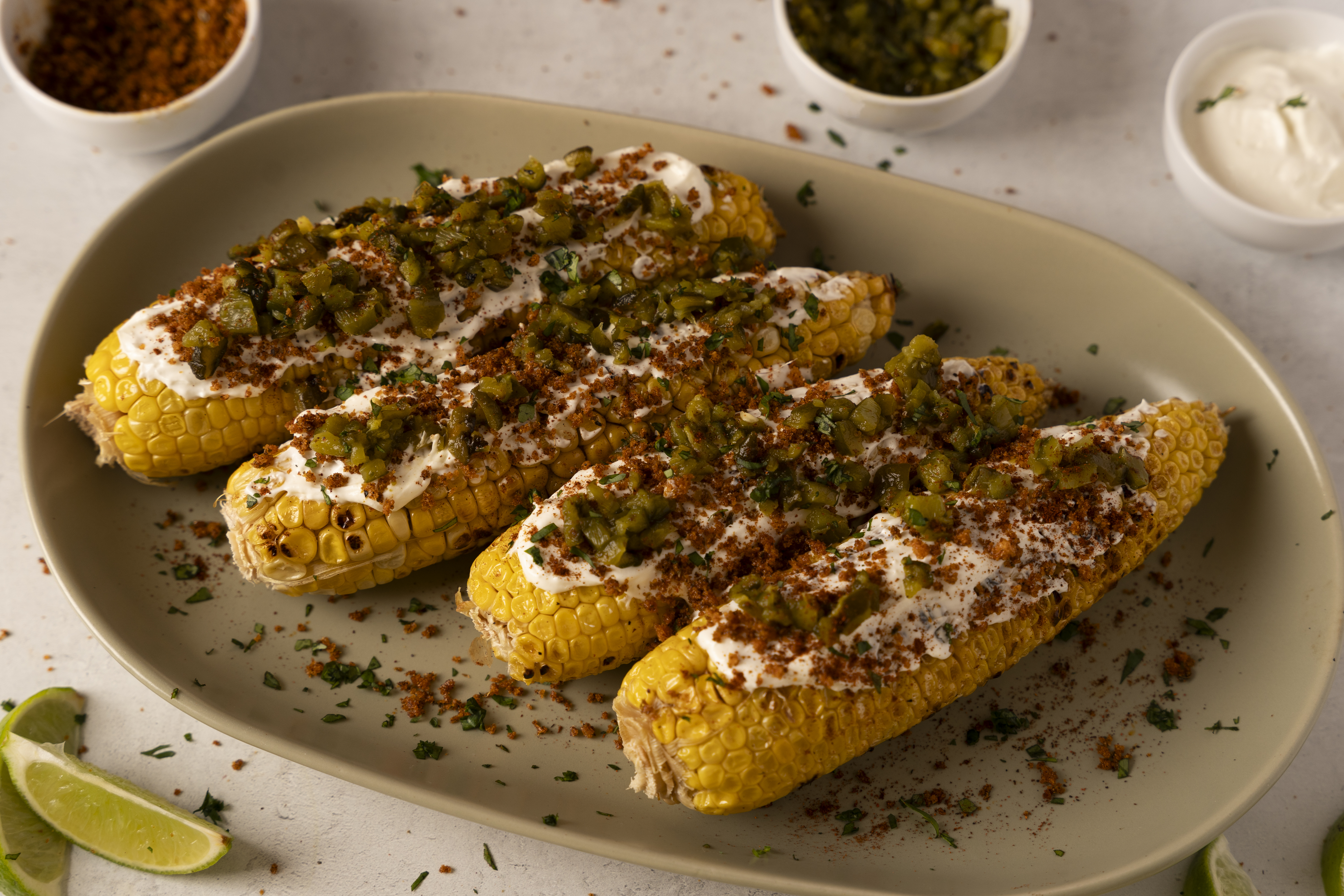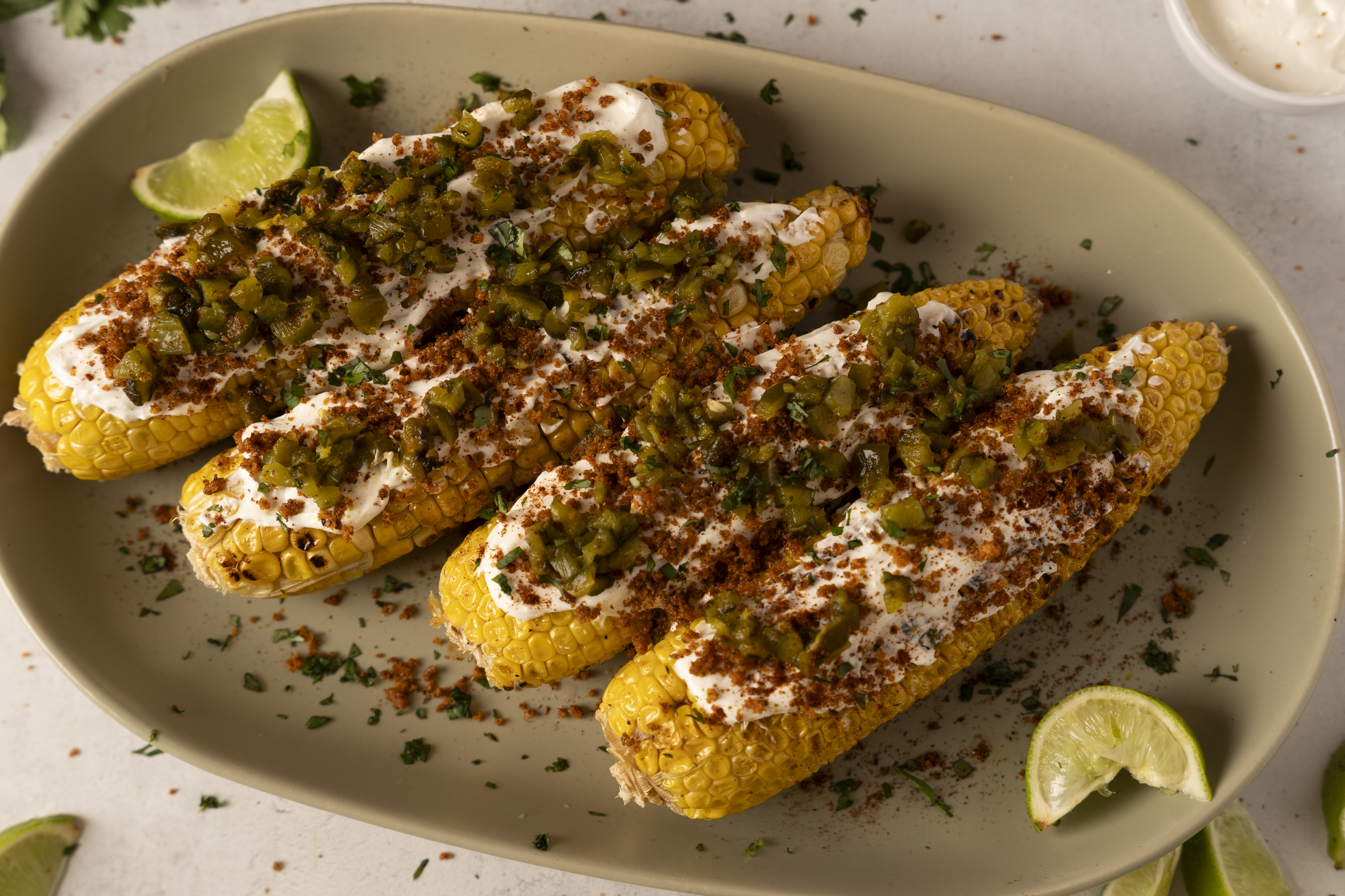 Now here's a side dish with some kick! Bang-Bang Street Corn packs electric excitement into each and every bite. The corn is beautifully grilled so it's summery and sweet, while the créma spread is tangy, luscious, and citrus-bright! That's all before getting topped with the crunchy, crispy breadcrumb mixture and its toasted, fragrant, zesty spices! Mmmm, Bang-Bang Street Corn certainly delivers some explosive eats!
