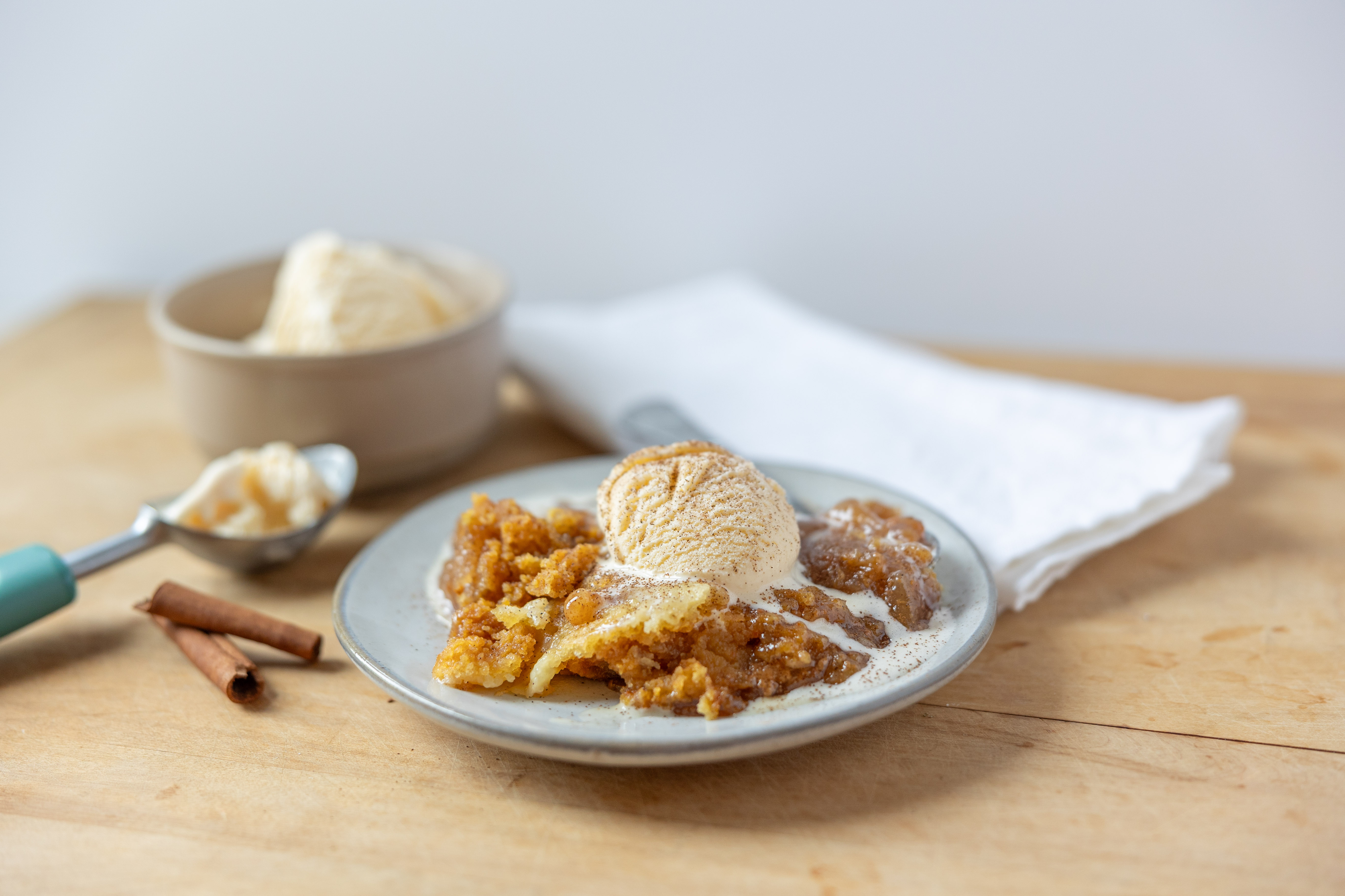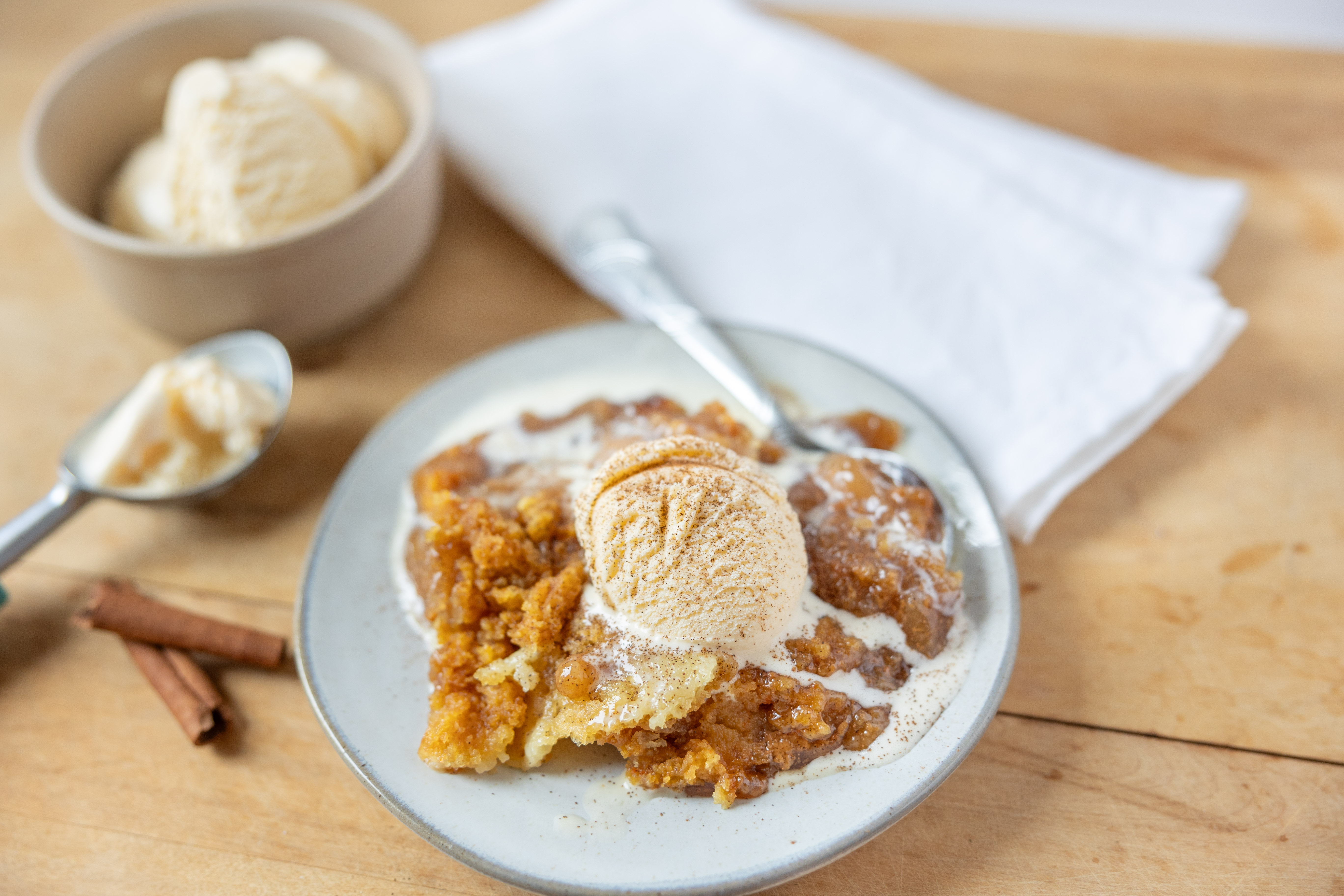A fall festival caramel apple is transformed into a delicious, comforting dessert! Hooray! Caramel Apple Dump Cake is a simple and tasty way to welcome the cooler weather — jammy, sweet, and beautifully spiced apples and a layer of buttery rich melted caramel hide beneath a yellow cake top! When you serve it warm with a scoop of vanilla ice cream, Caramel Apple Dump Cake becomes a sweater for the soul!