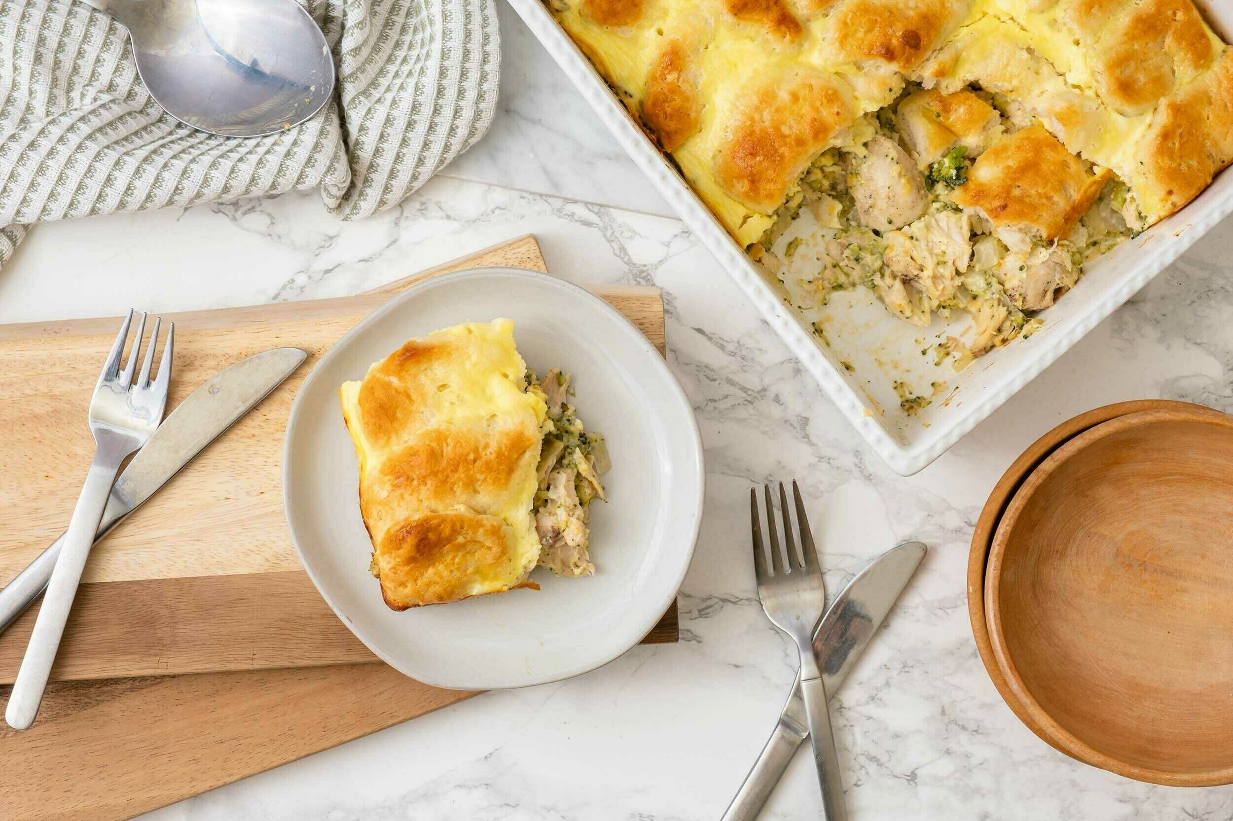 Tender chicken in a creamy, savory, tangy sauce doesn't sound like it needs much improvement. Chicken Biscuit Bake proves that thought wrong by adding in—what else?—buttery, flaky, golden-brown biscuits as the crust. Add in some fresh veggies and cheese (because cheese makes everything better) and you'll have yourself the undefeated champion of dinner. Chicken Biscuit Bake is exactly what you need to turn a good day into a great day!