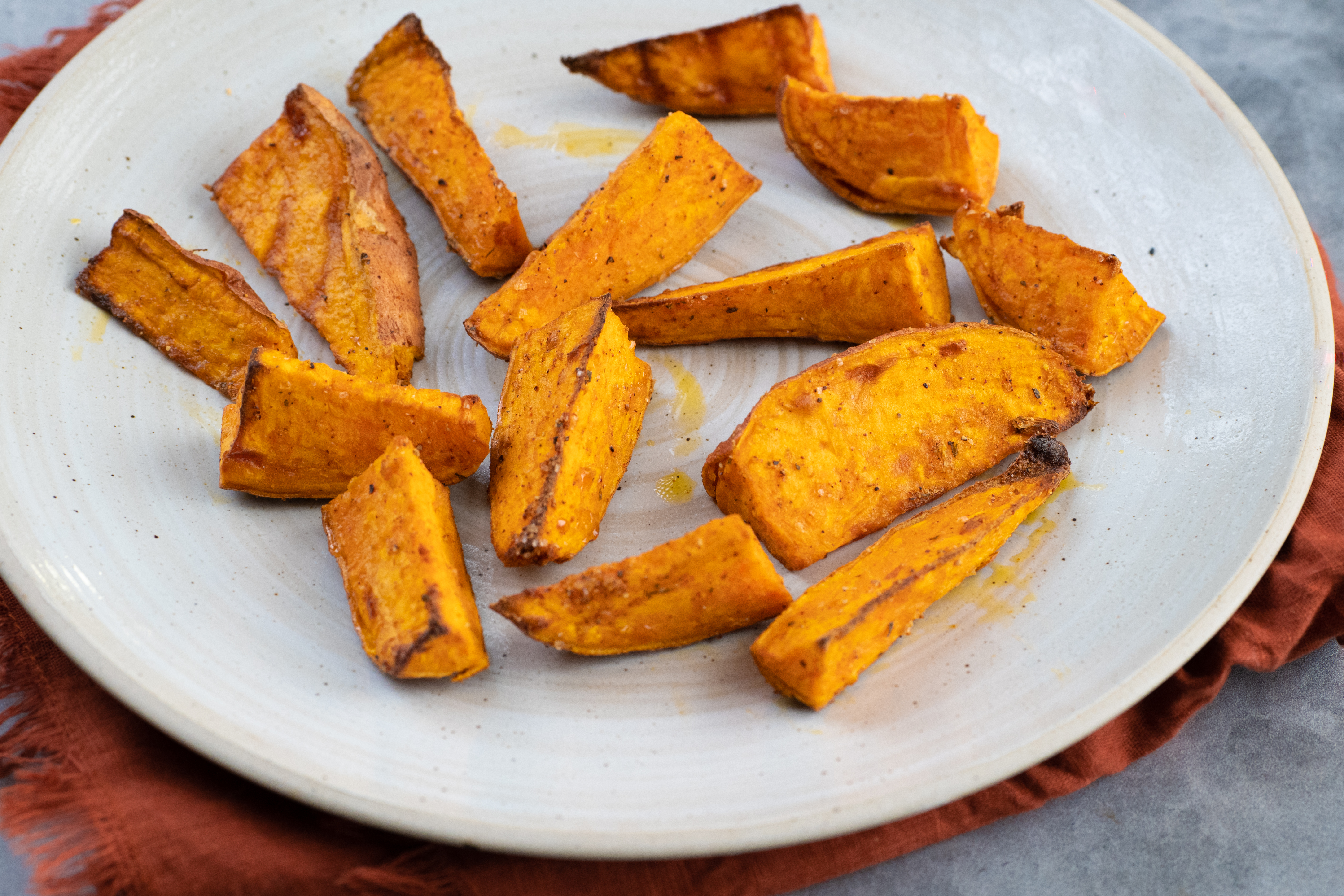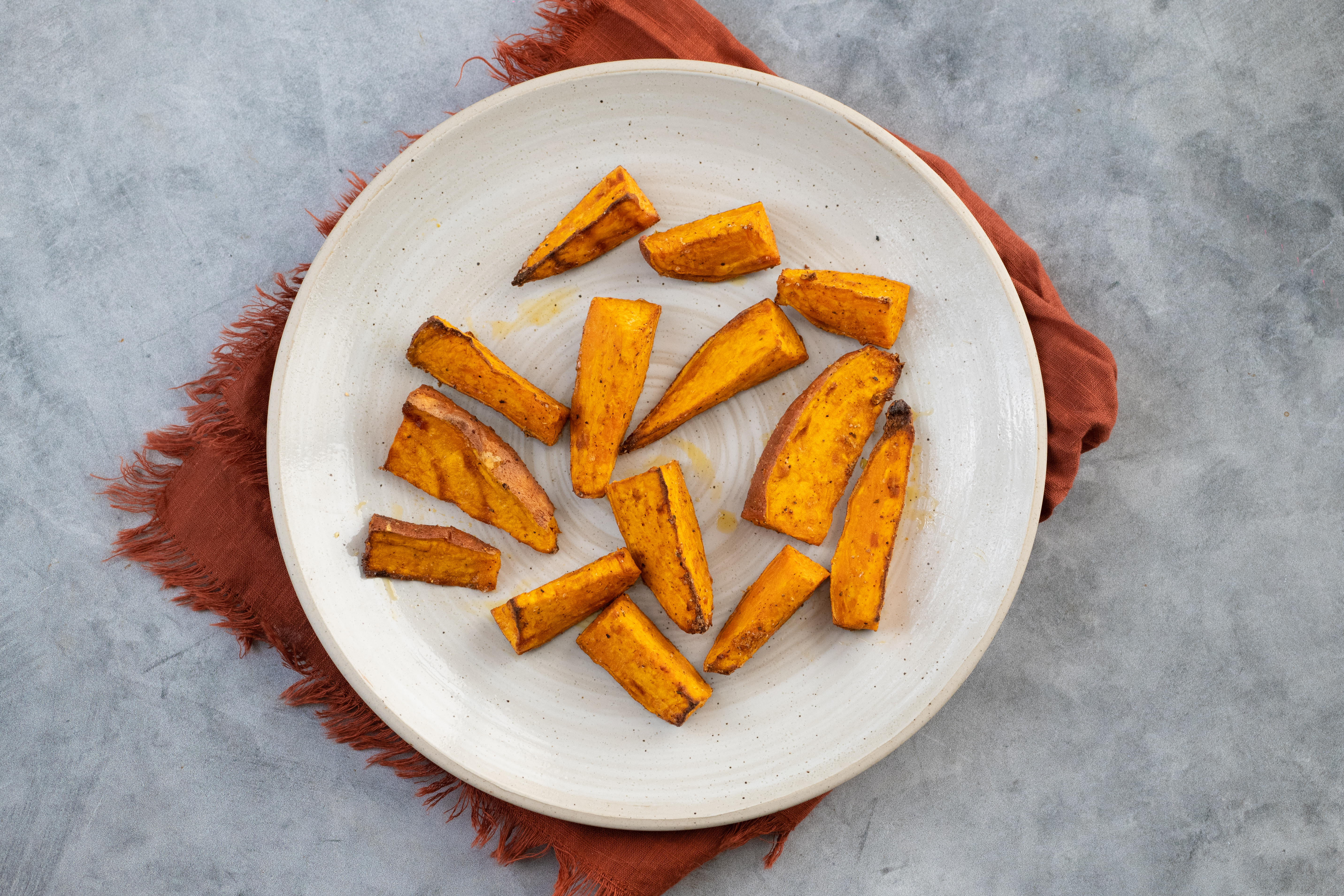 - 2 pounds medium sweet potatoes, sliced into wedges