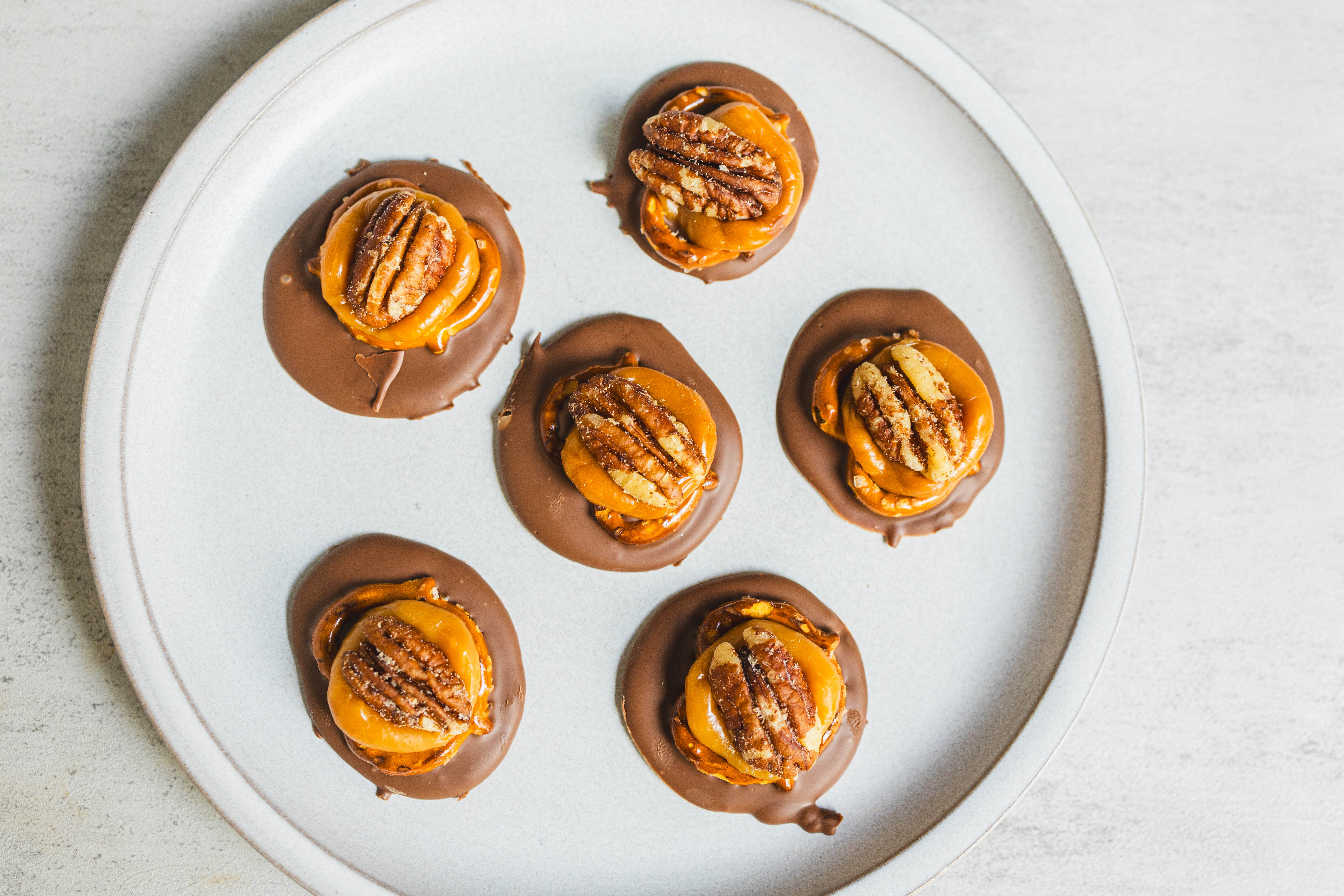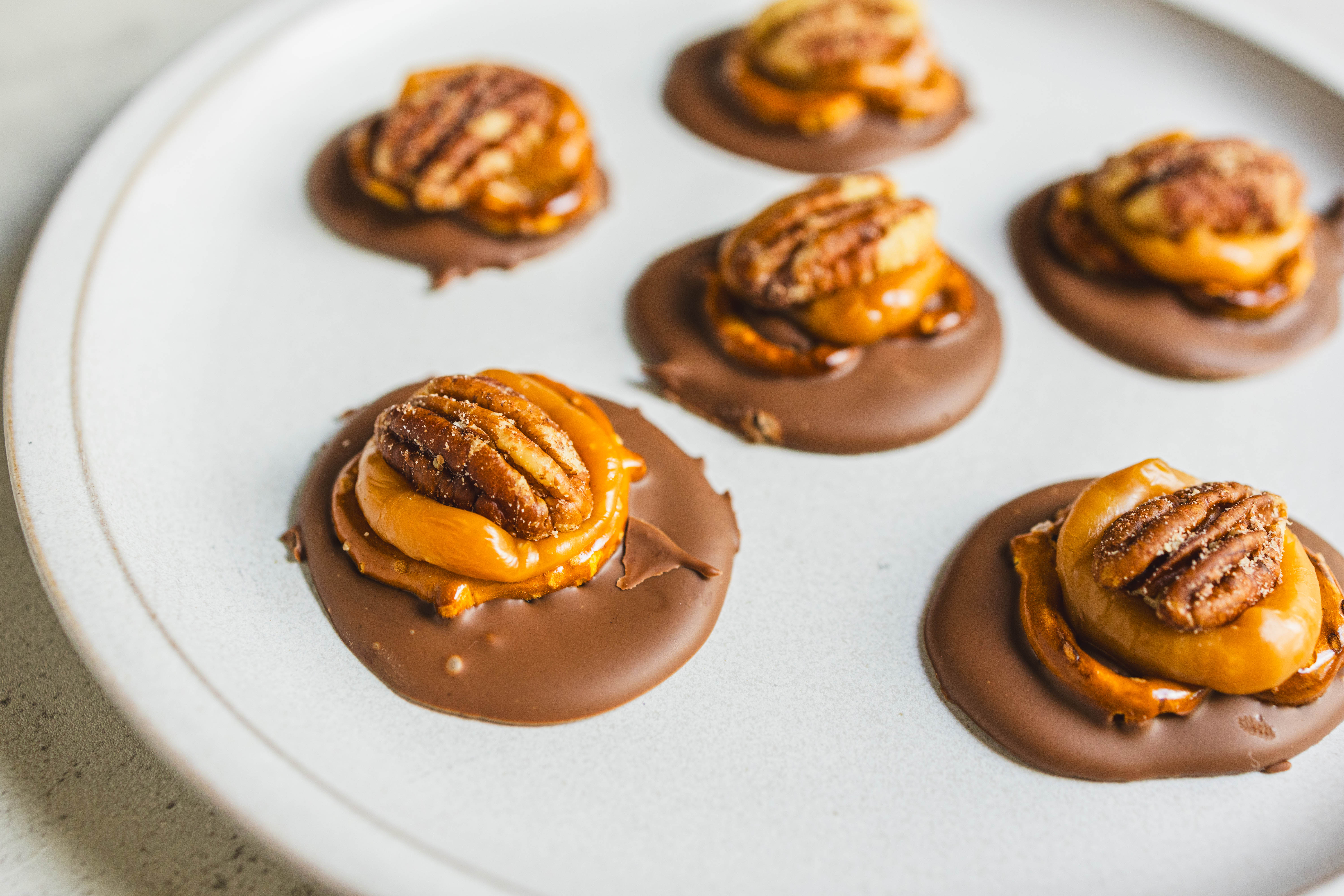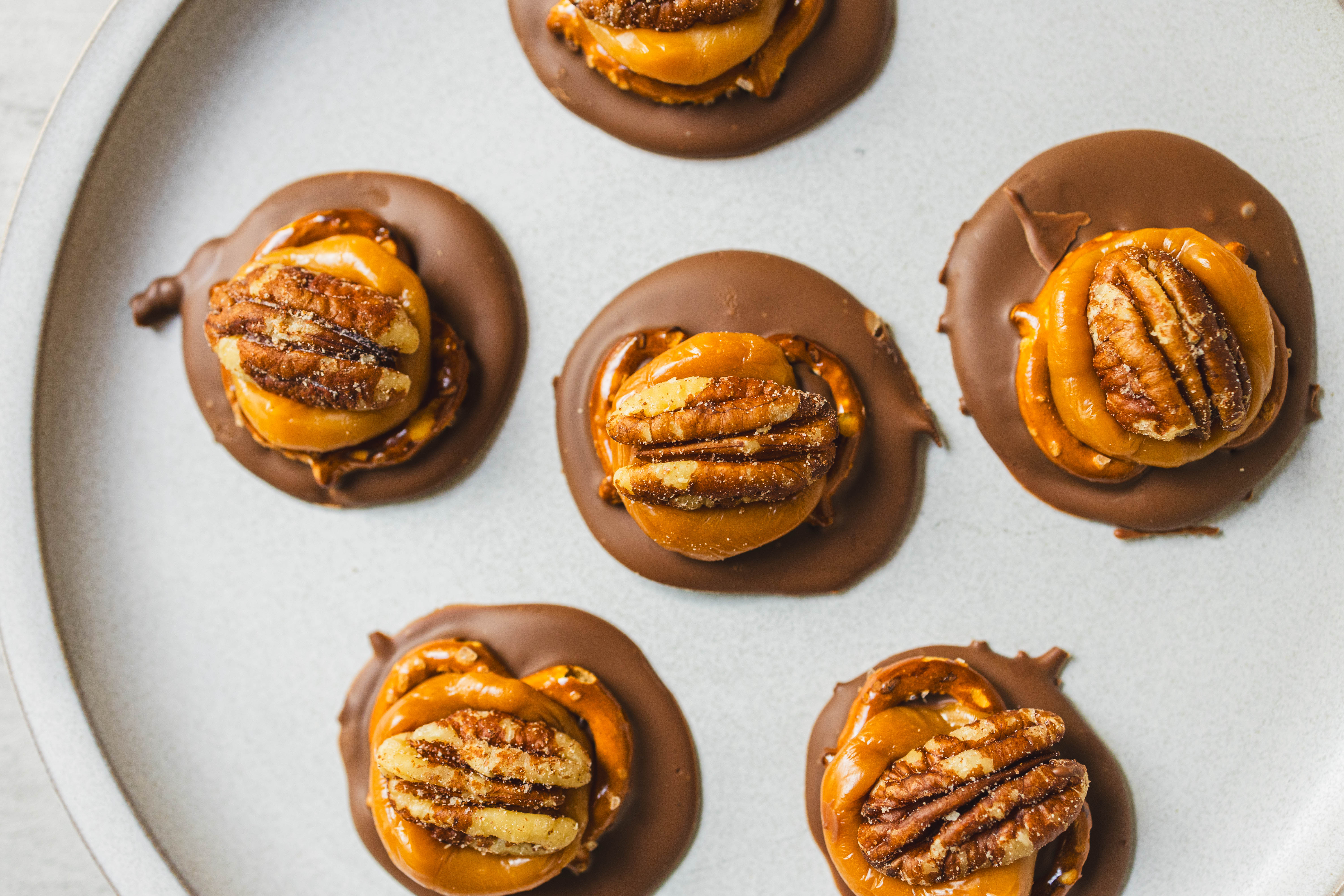 Candy shop treats can be made in your kitchen, and without breaking a sweat! Easy Turtle Treats are layers upon layers of happiness, from the turtle shell of the pecan on top, to the pool of rich chocolate on the bottom, all with a crunchy pretzel and buttery caramel lovingly sandwiched in between. Each of Easy Turtle Treats takes you back to your childhood and seeing those delightful candies in the window... and now you can enjoy them to the fullest!