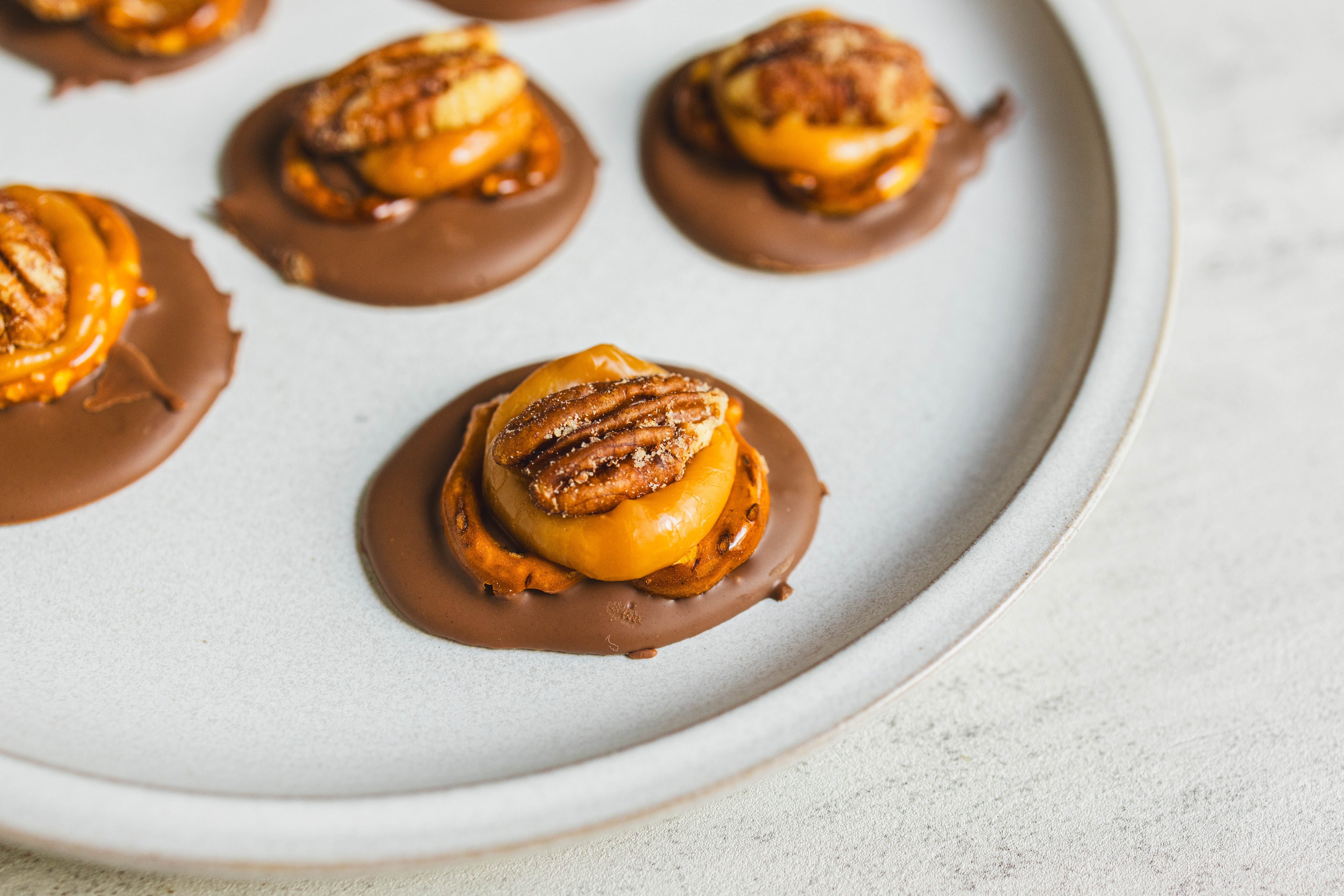 Step 7 -Top each of the pretzels with one of the unwrapped caramels.