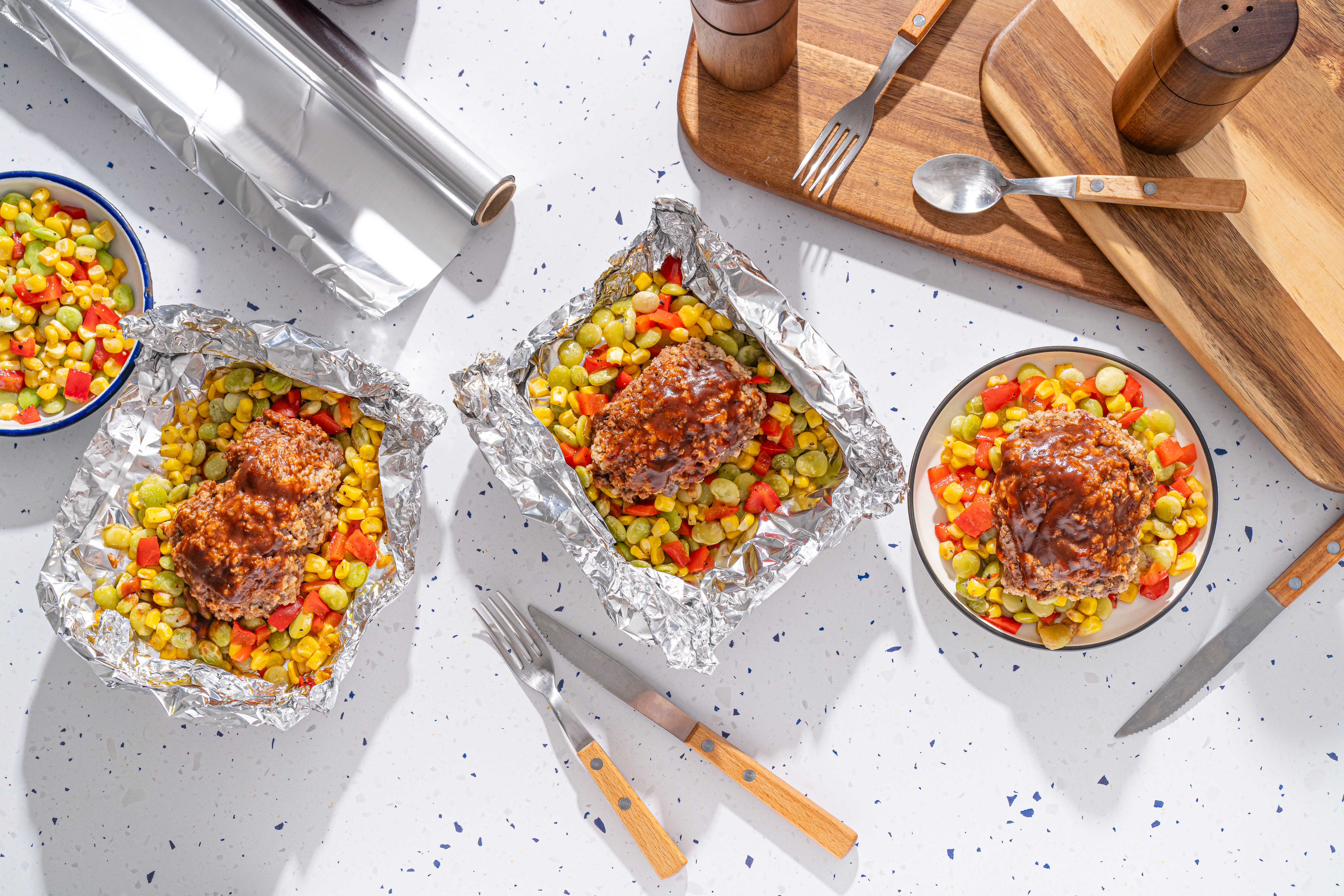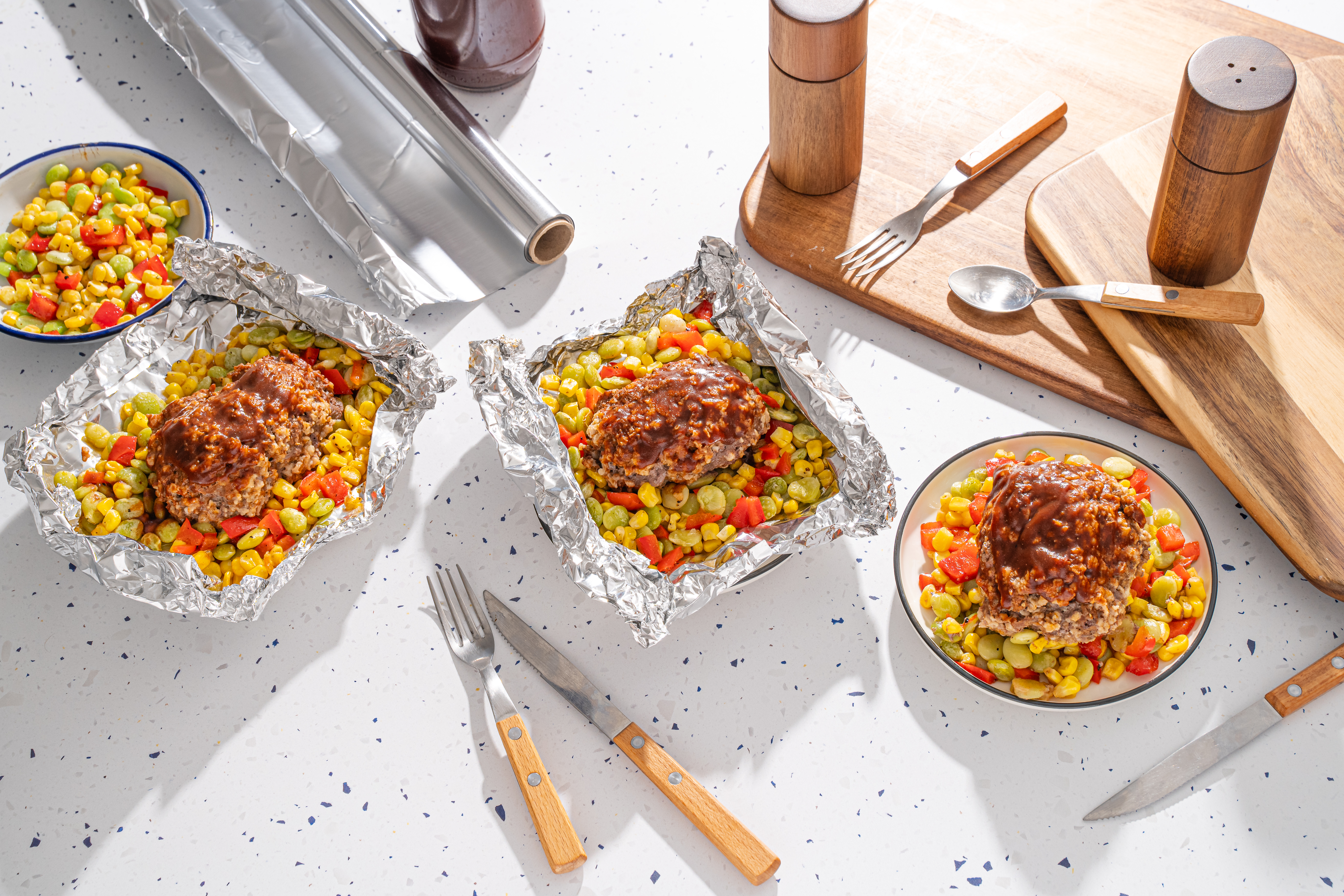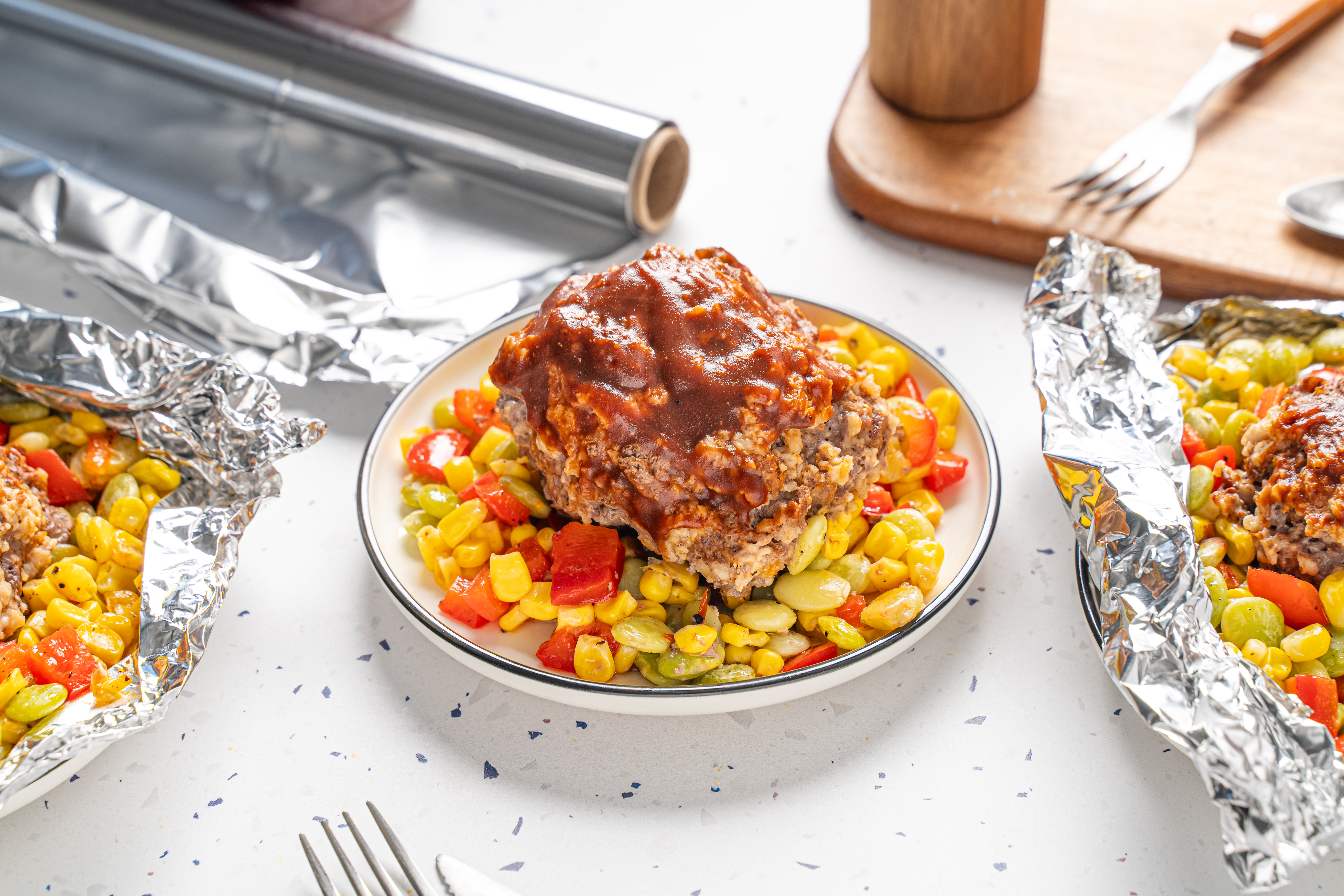 It's camp-out flavor without the camping! For some indoor enthusiasts, that's a win-win! Fireside Meatloaf is prepared in a foil packet (classic outdoors style) and grilled to achieve that same open-flame effect! The result is obvious when you unwrap each packet — savory, juicy, barbecue-delicious meatloaves with tender and refreshing vegetables! Fireside Meatloaf brings the adventure to your table, rather than the other way around!