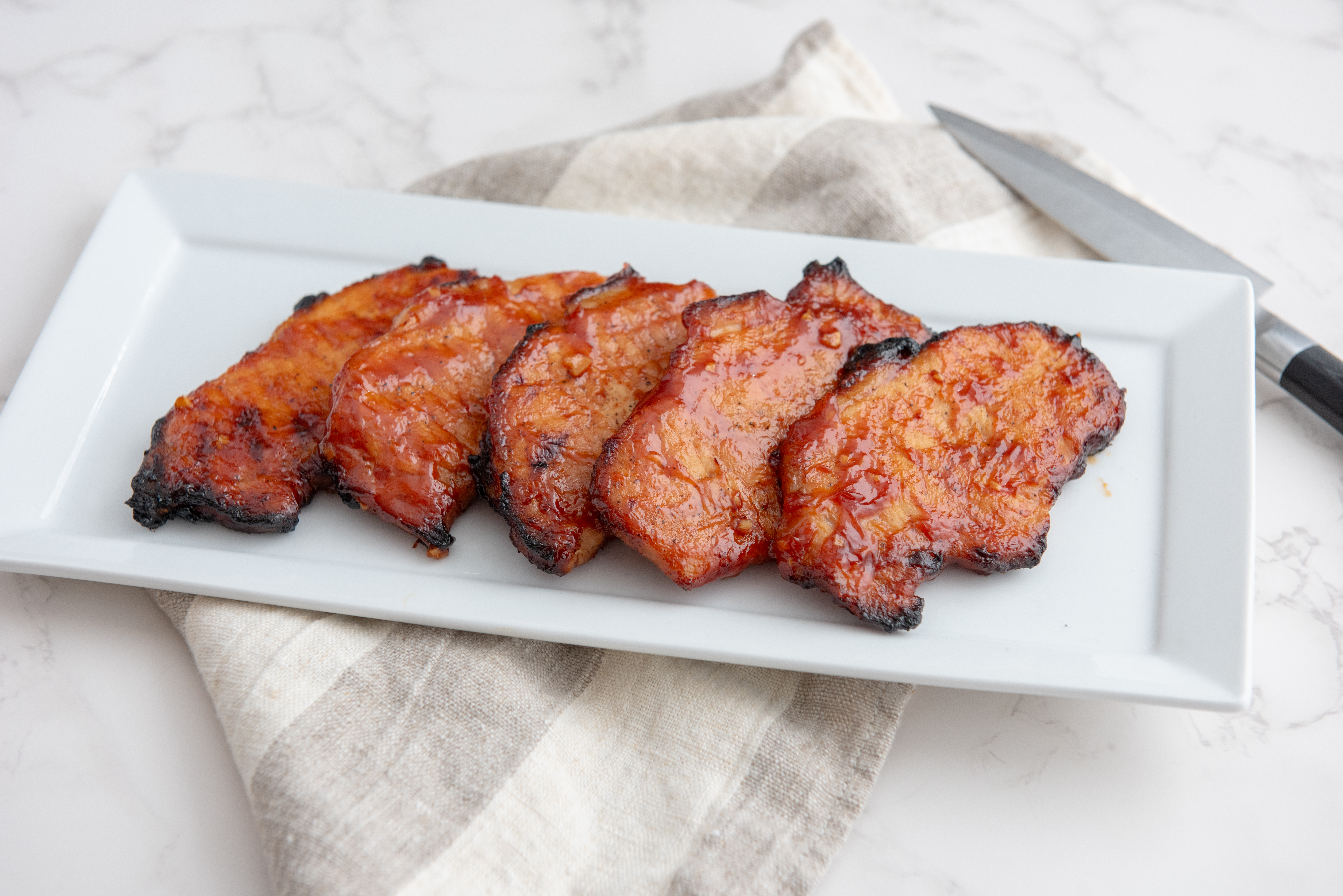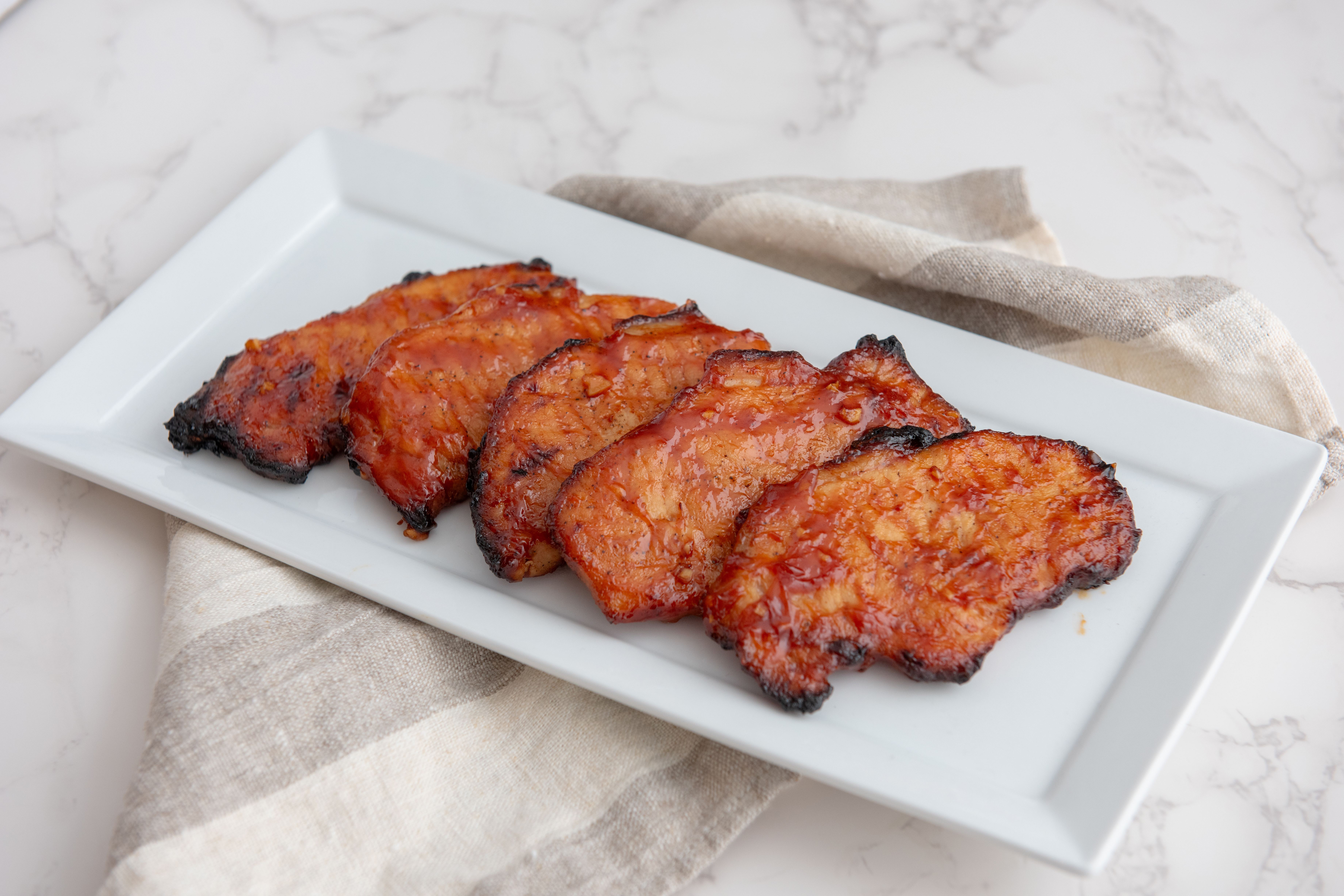 Oh yes, these are the ones you've been waiting for. First-Class Pork Chops really are the highest-quality pork chops you could imagine. Broiled until perfectly juicy inside and caramelized with a honey-garlic glaze that creates a sweet-and-savory emphasis on all the meaty flavors... this dish is simple but elegant. It's perfect served alongside a potato puree or maybe even just French fries, depending on your mood. It doesn't matter what side dish you choose, because First-Class Pork Chops make everything top-notch!