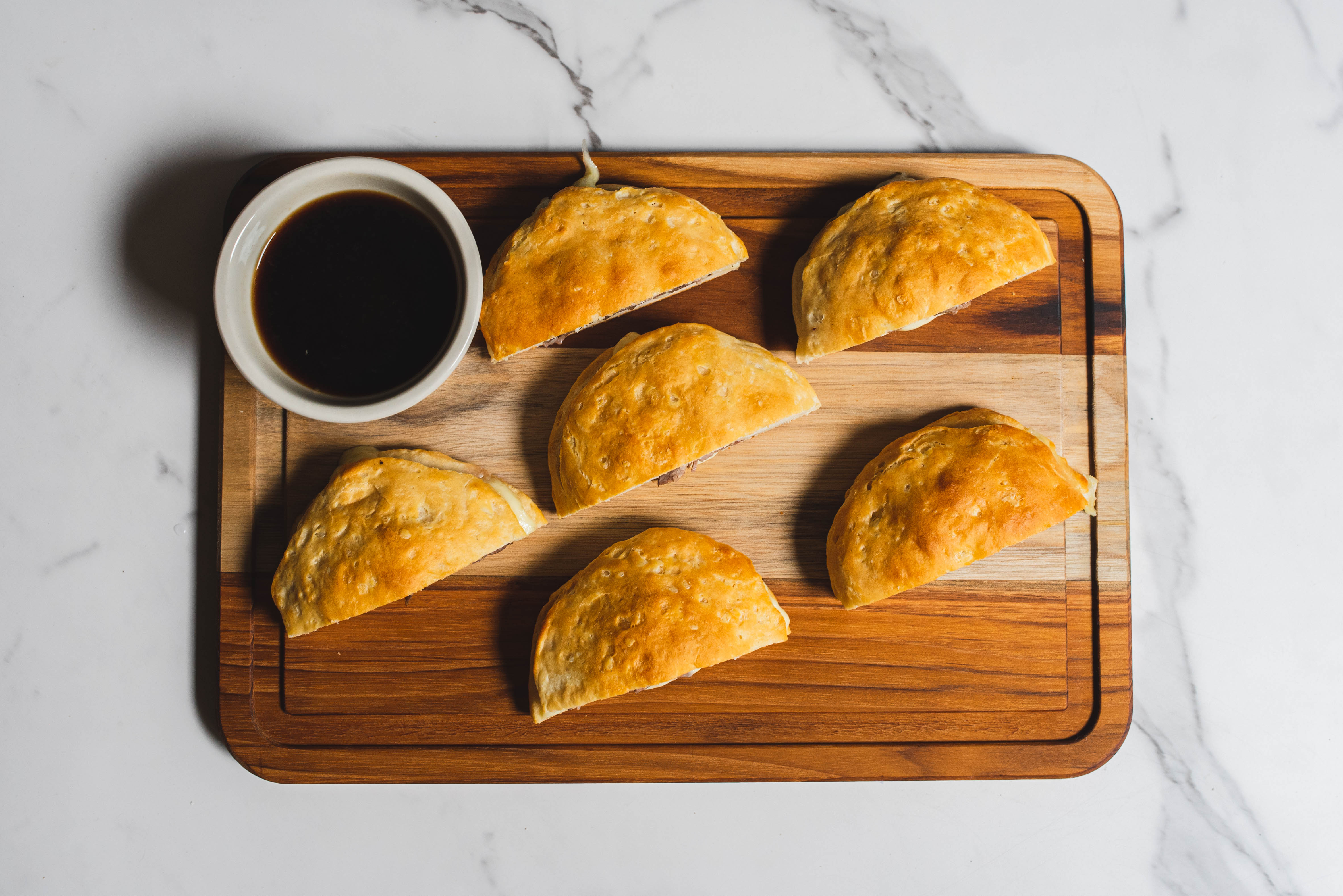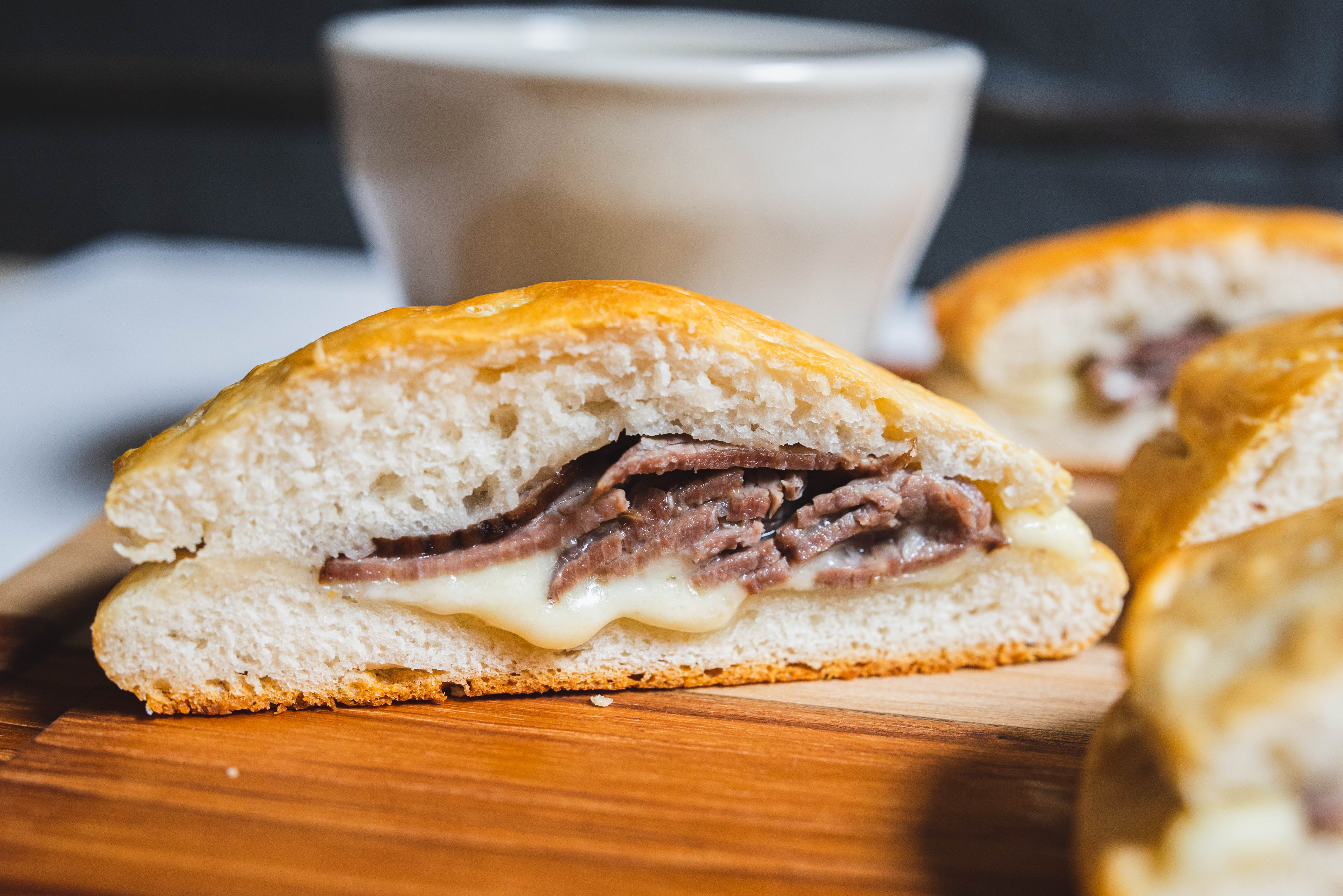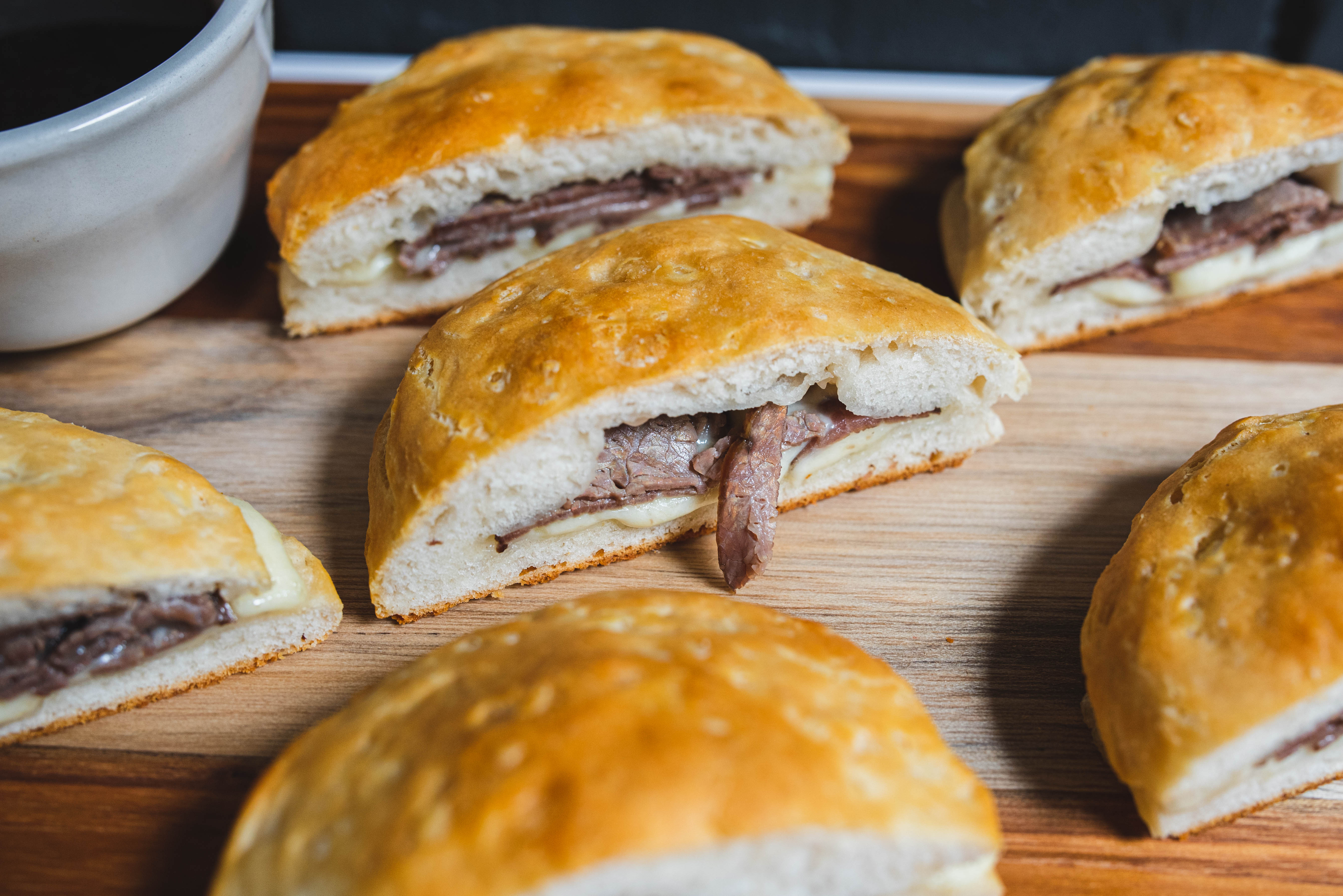 Well, this is just a great idea on its face! French Dip Biscuits! Buttery, flaky biscuits are stuffed with creamy, tangy, spicy horseradish, melty provolone cheese, and savory roast beef, and then baked to a golden-brown, so each one is a delicious, luxurious sandwich all on its own! Then, it's served with the traditional French dip accompaniment, beefy au jus gravy! French Dip Biscuits will make lunch feel like a breeze and a 5-star experience at the same time!