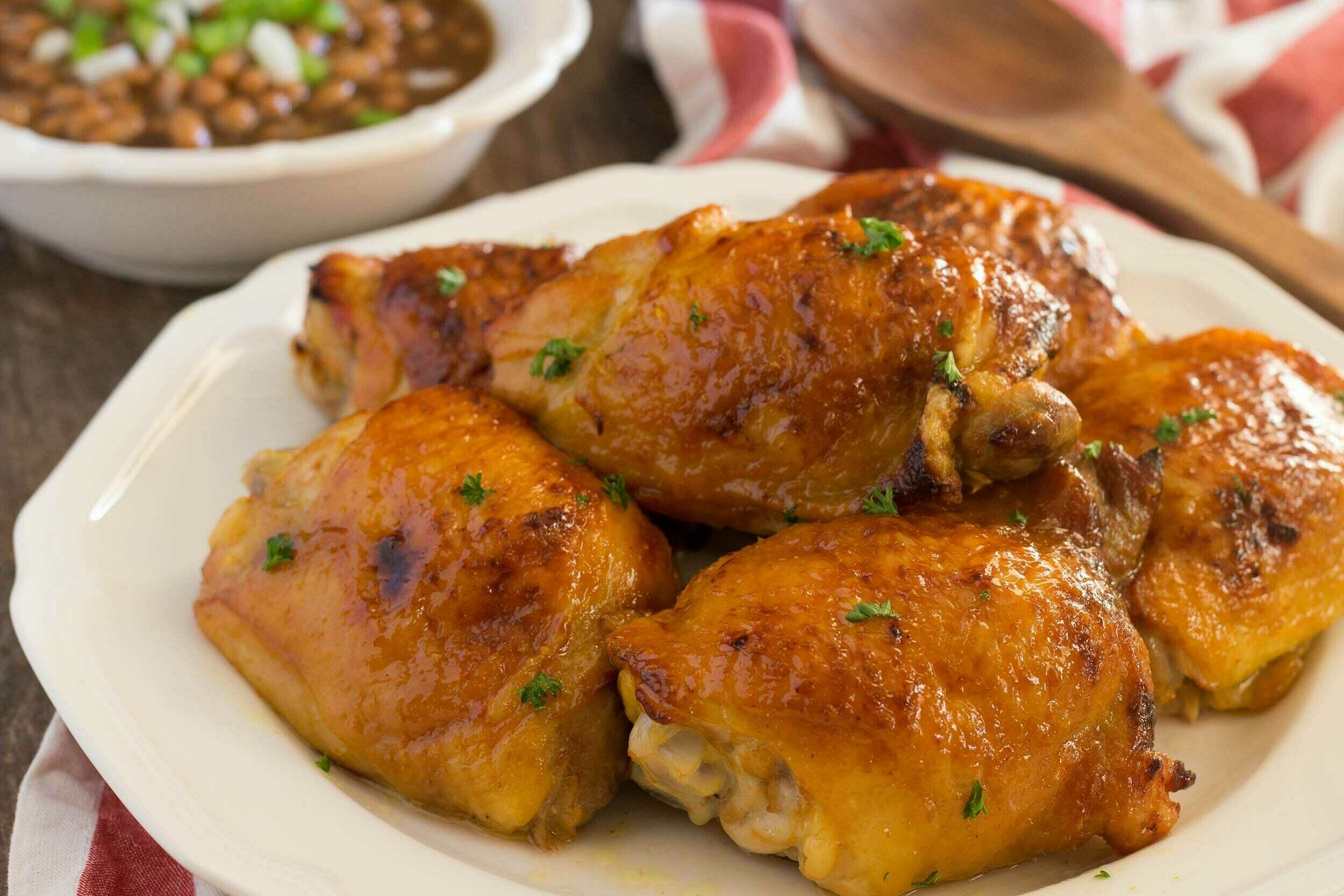 Honey Baked Chicken Thighs are the best... and that's really the end of the sentence! In only five steps, you can have this golden, sweet, tangy, and slightly spicy chicken ready on your plate. Every bite of Honey Baked Chicken Thighs is equal parts juicy, savory, and fatty, with a flavor so rich you'll be amazed it didn't come from a restaurant. Lean back in your chair and let these delicious flavors sweeten your day!