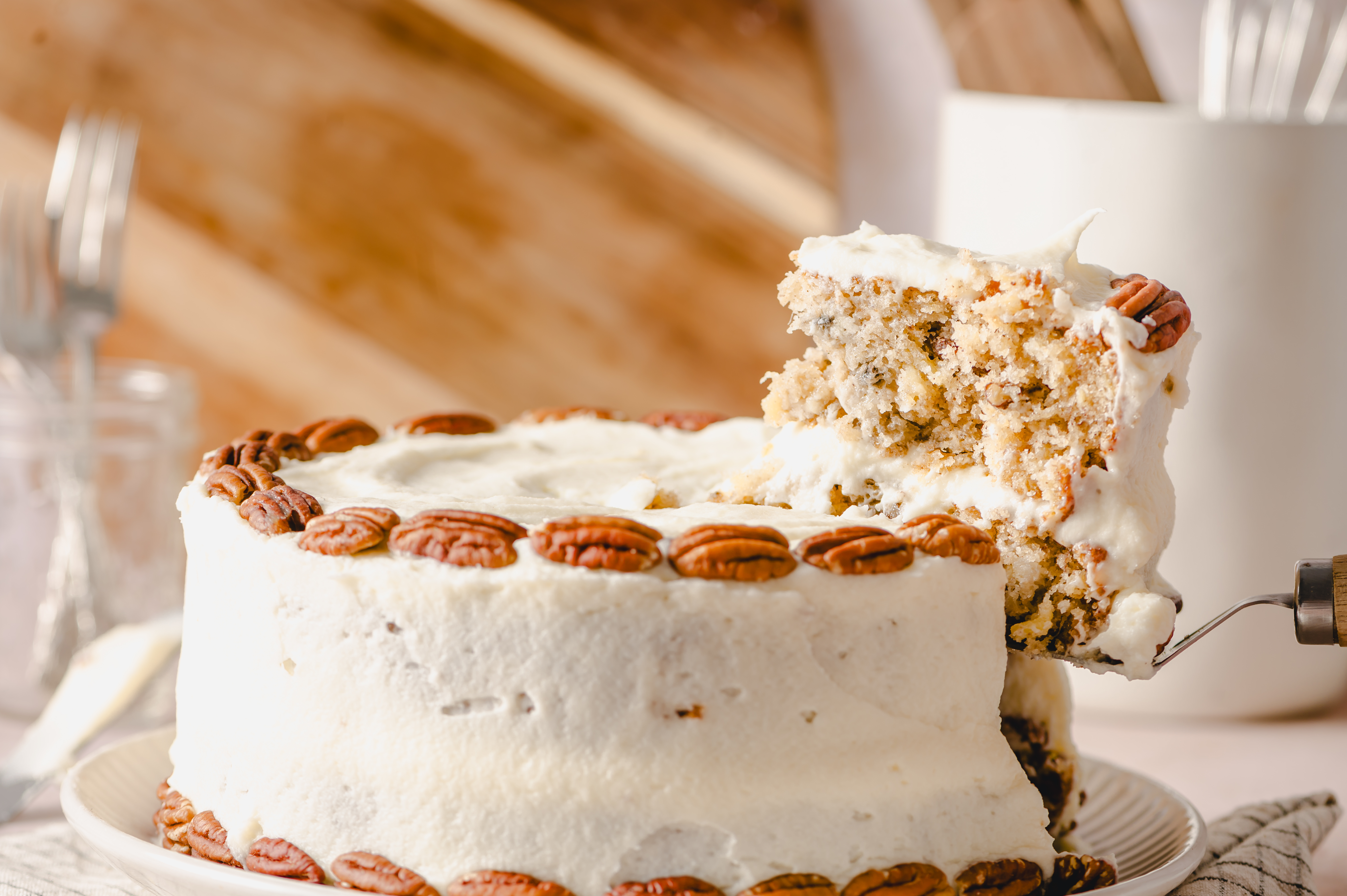 Our momma believed we were made to find beauty in everything. So, she made it her goal to make even mundane things gorgeous. Momma's Hummingbird Cake is the perfect example of that. Not necessarily mundane, but an unassuming and humble cake, each moist slice is rich with sweet hints of vanilla and cinnamon, and the added textures from the crushed fruit and pecans are simply divine. She really would leave her mark with the way she would perfectly spread the creamy vanilla frosting all over and decorate it with the pecans. It is so simple, yet delightful enough to be pictured in a magazine. So, if you're searching for a little beauty in your day, make Momma's Hummingbird Cake and you'll be sure to find it!