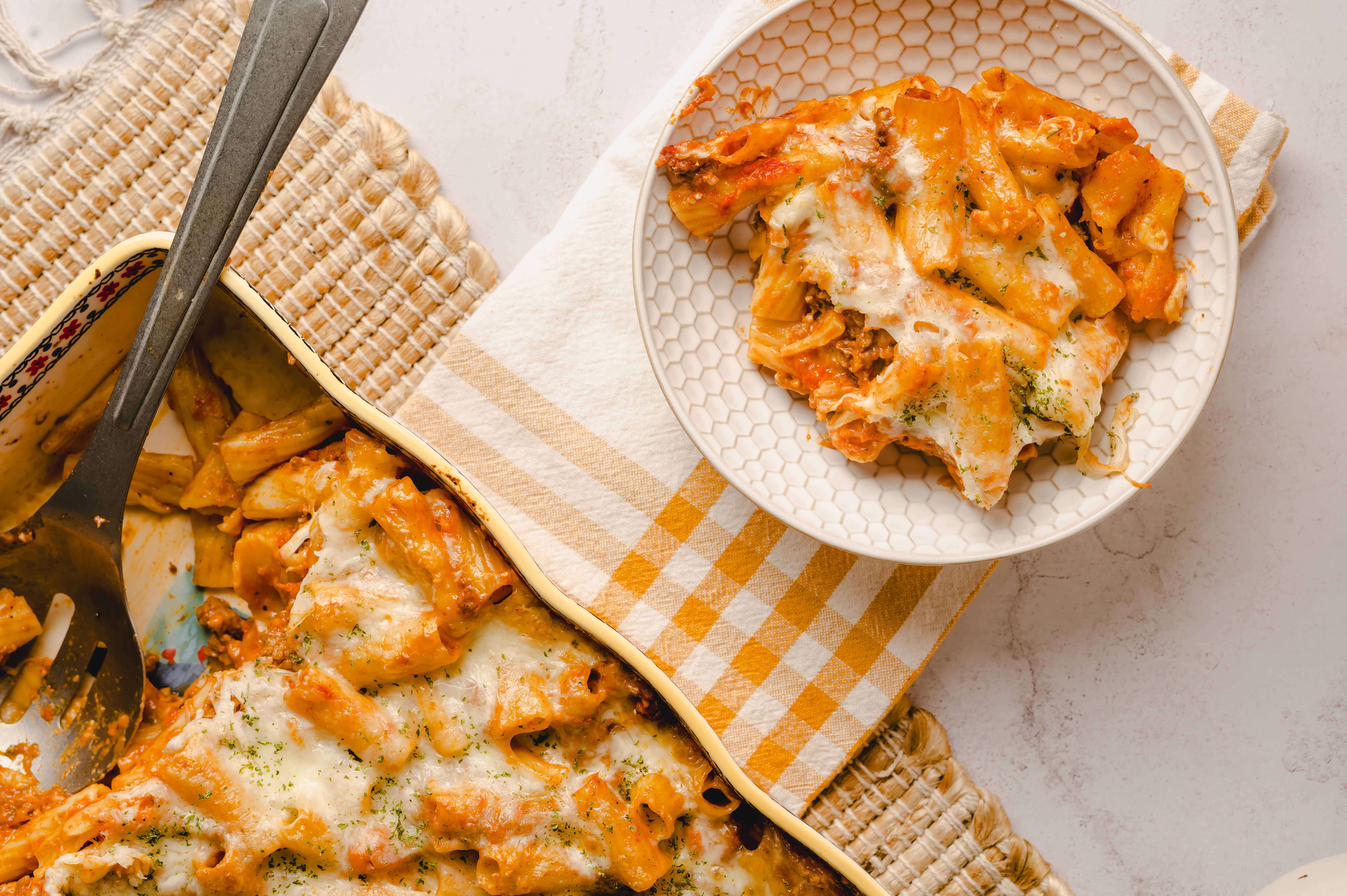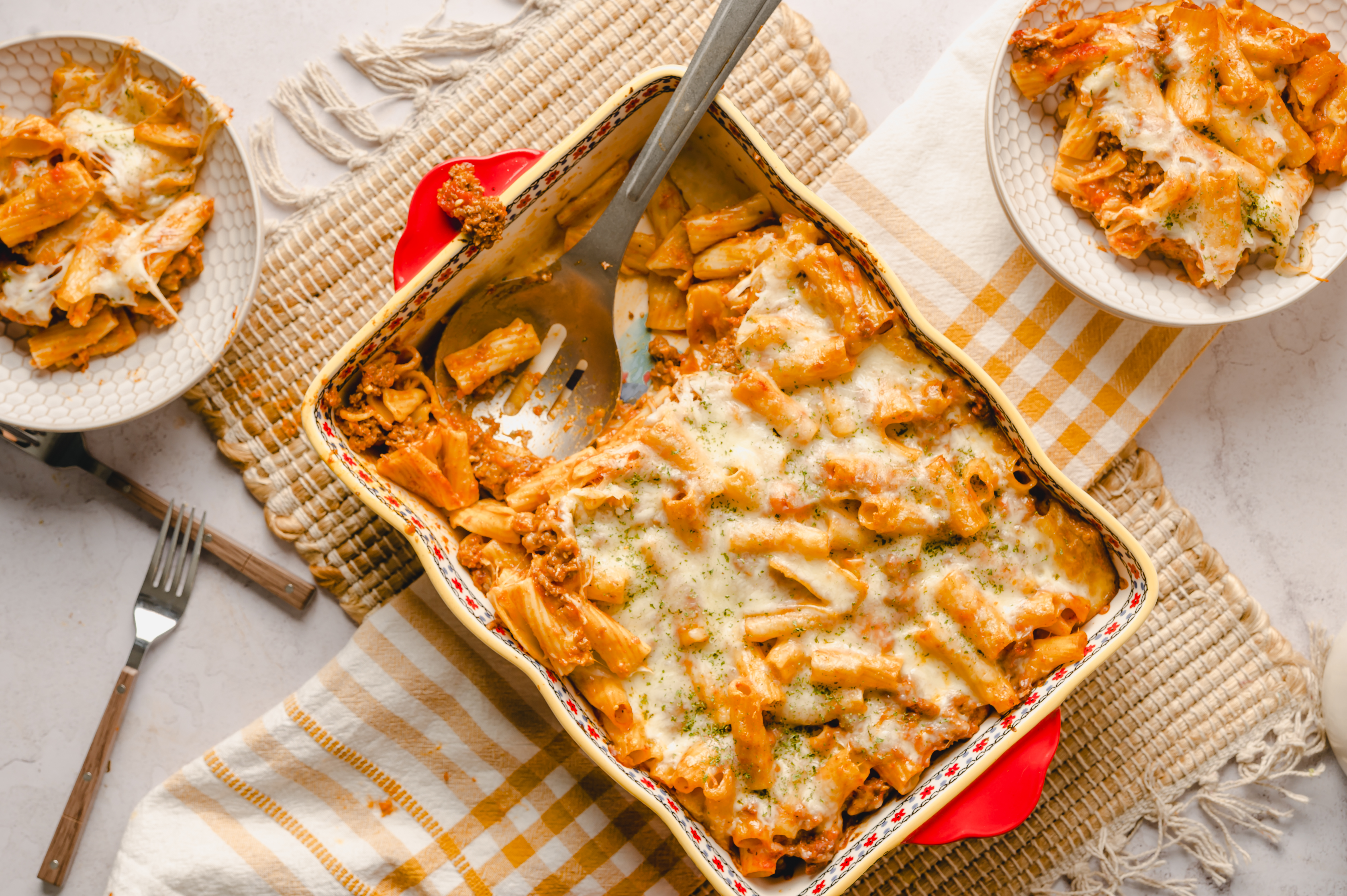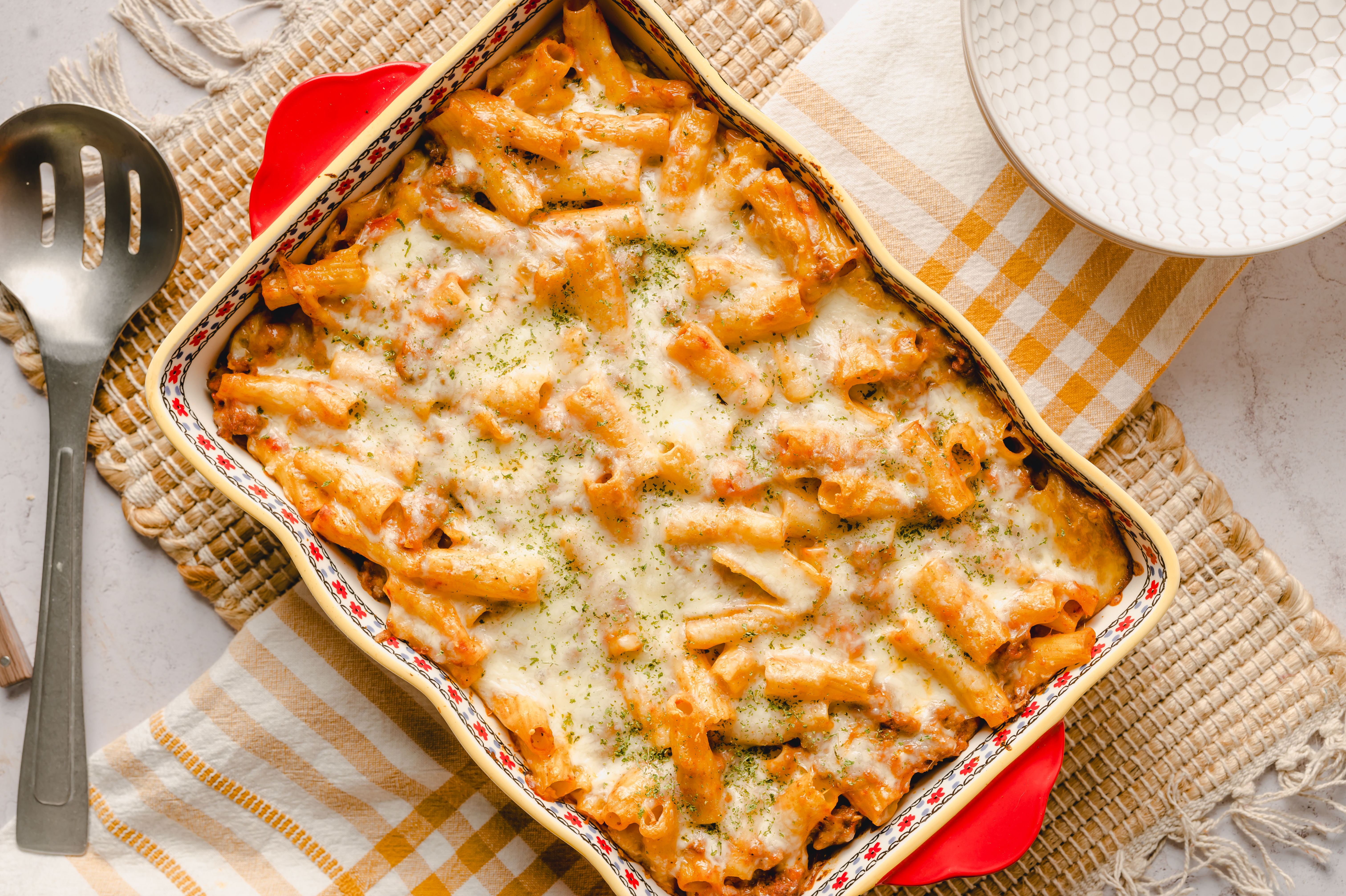 When you're yearning for a nice home-cooked dinner, who knows best!? Mom's Baked Rigatoni Pasta will definitely do the trick! Rigatoni pasta surrounded by an amazing Italian sauce — that Mom knows like the back of her hand — all topped with melted mozzarella cheese, is truly the best when you need a "food-hug" from your momma! Gather your family, grab a loaf of French bread, and get Mom's Baked Rigatoni Pasta on the table, pronto!