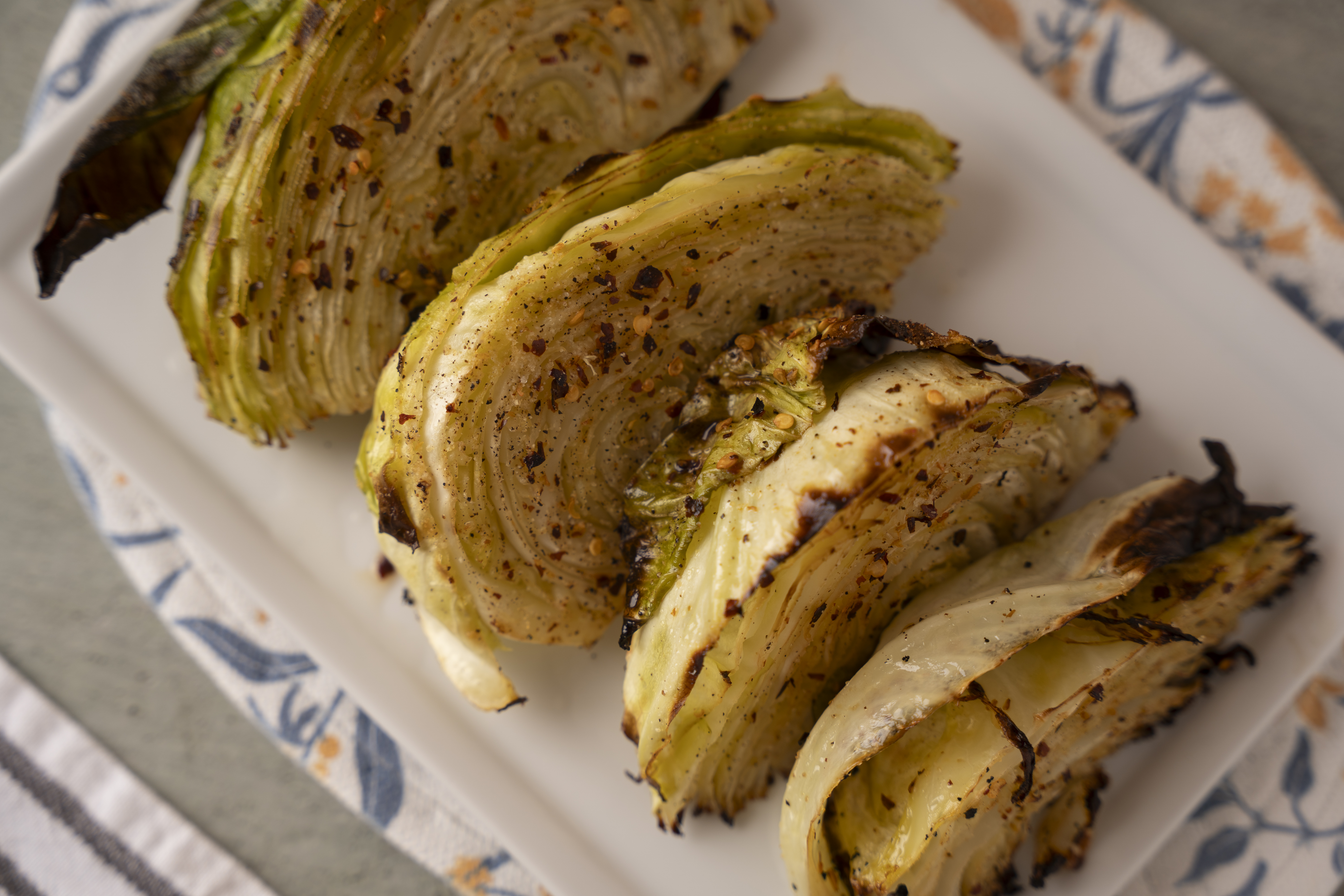Step 3 -Season the cabbage wedges with the garlic powder, the red pepper flakes, the salt, and the pepper.
