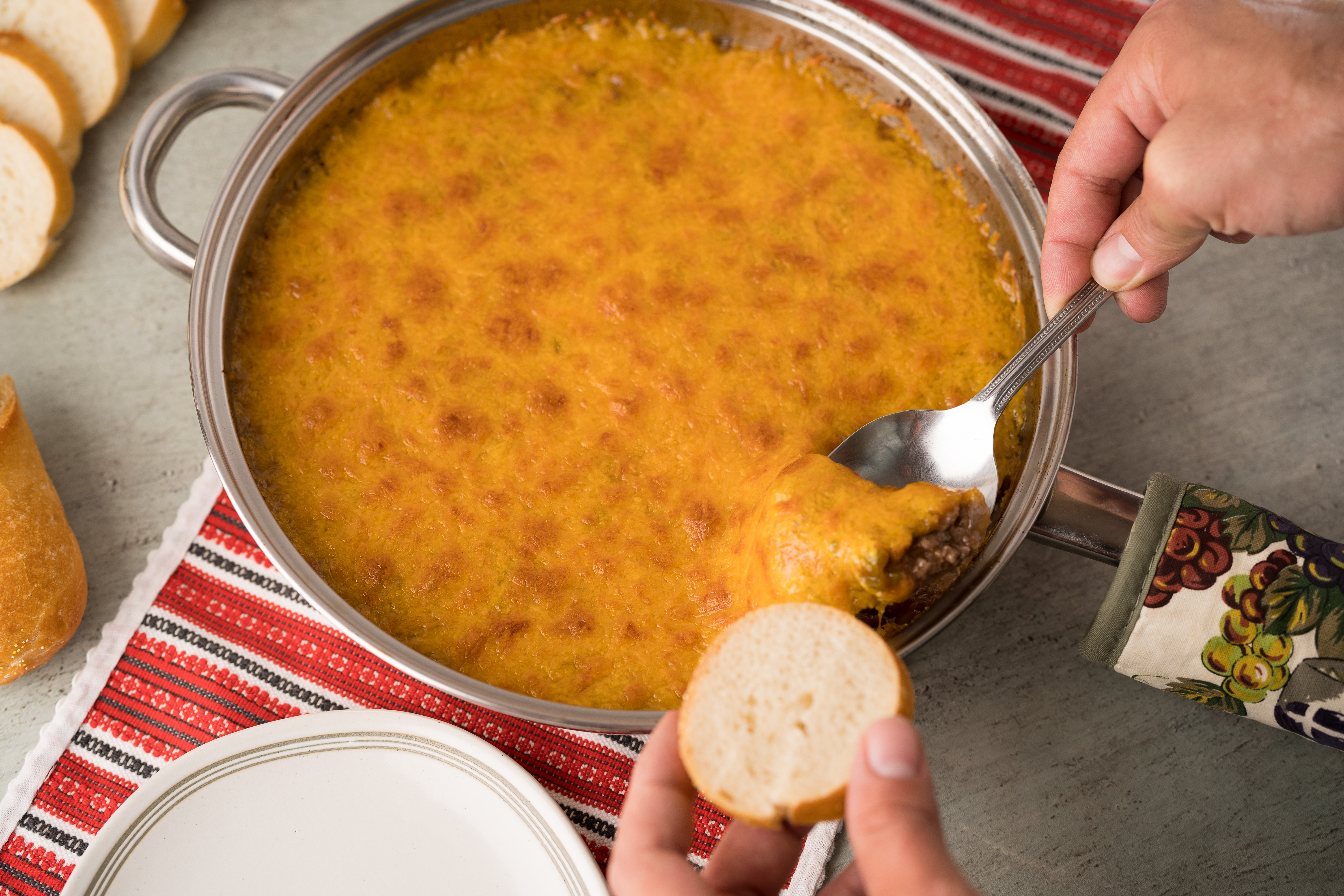 Sloppy Joe Dip! It's so obvious in hindsight; what is a Sloppy Joe if not a sandwich just trying to contain a meaty dip? And yet, this Sloppy Joe Dip is going to be the mind-blowing appetizer of the season! Tangy, sweet, smoky, savory, and truly, amazingly beefy, Sloppy Joe Dip tastes like those classic school lunches, just topped with a layer of melty, sharp cheddar! Grab some toast or crackers and crowd in! Don't miss out!