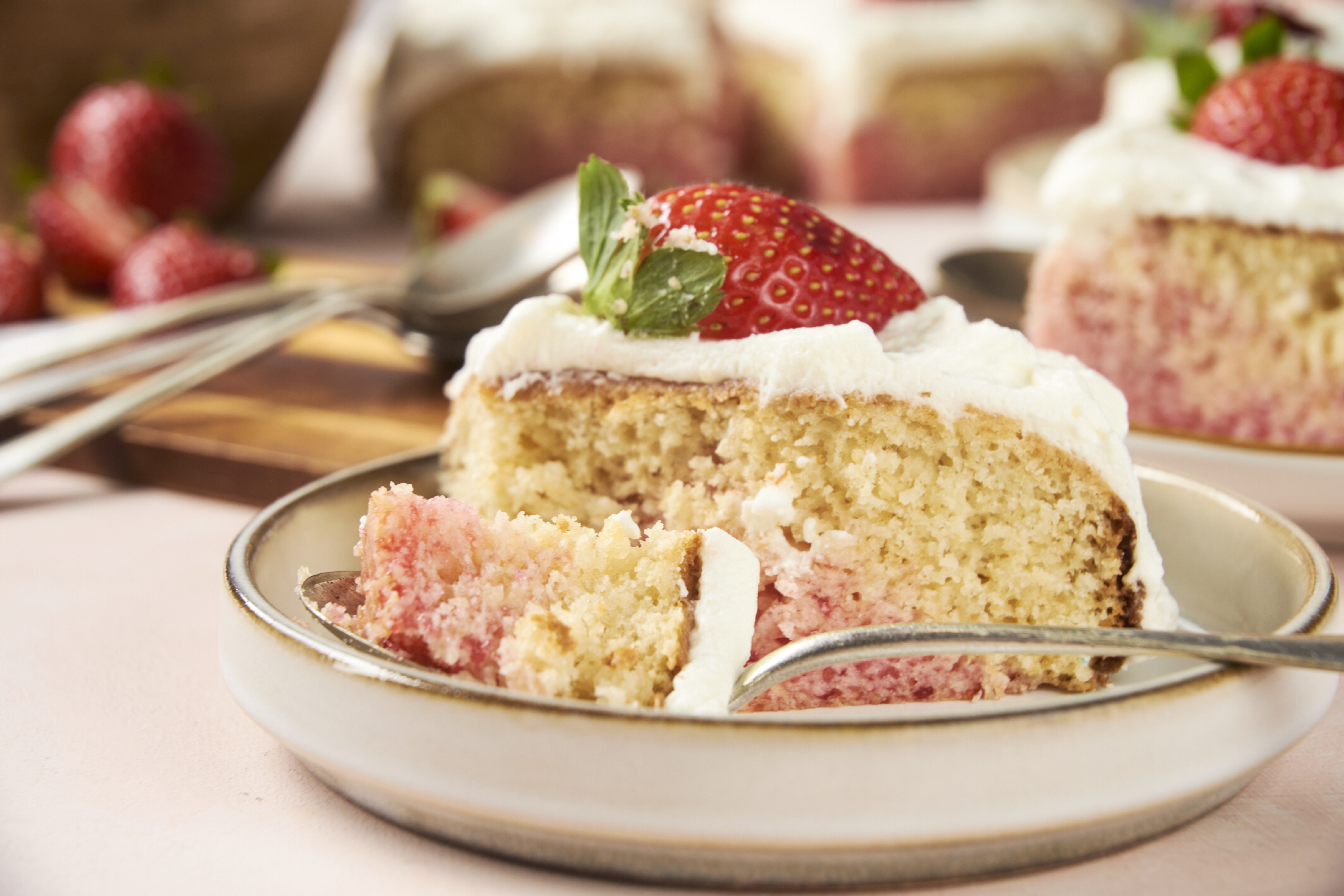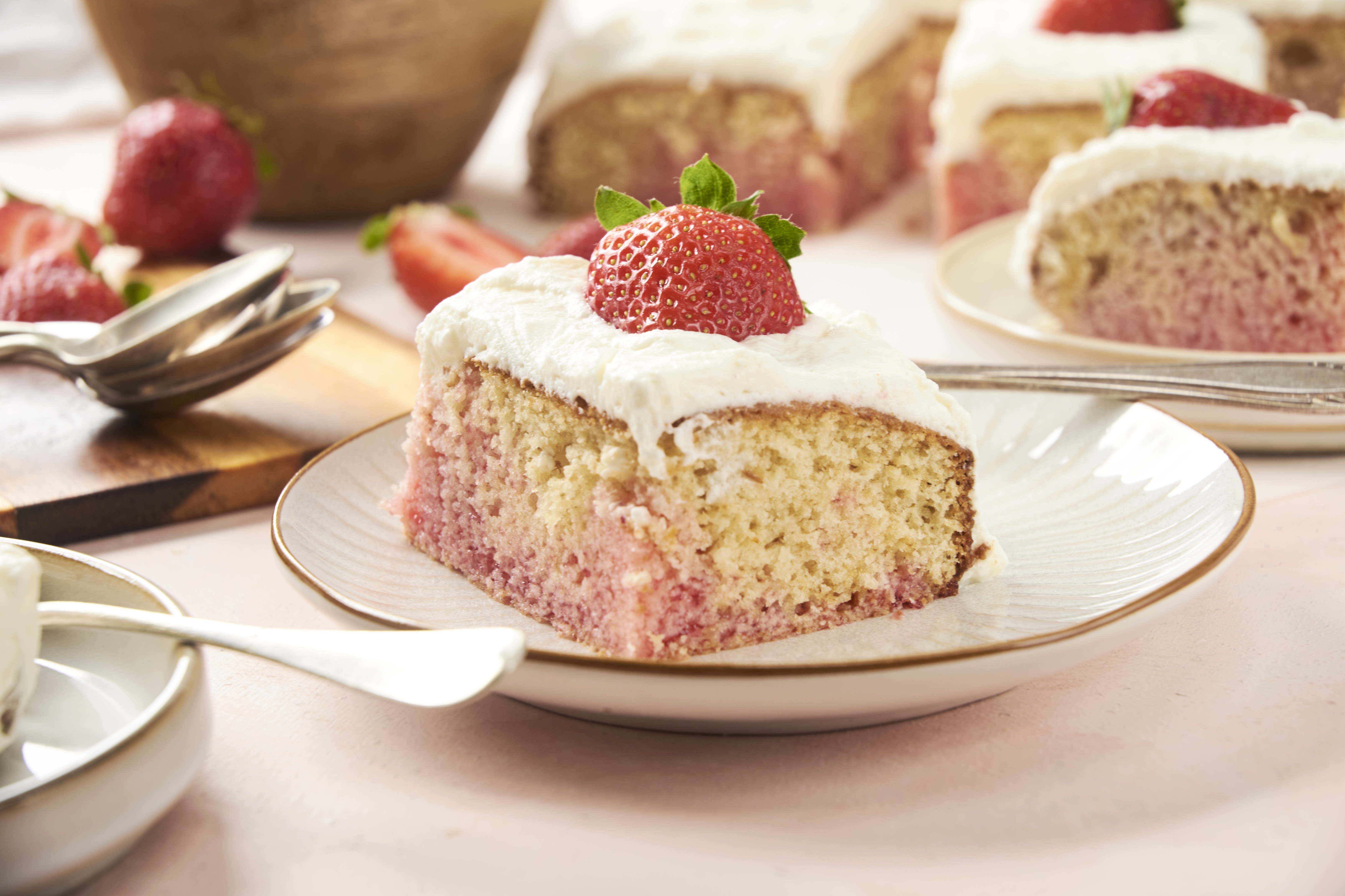 The Strawberry Poke Cake is a classic style of cake with a flavor that never goes out of style! The tender white cake is poked with holes and filled with refreshing and sweet strawberry gelatin for a summery treat! Topped with fluffy and creamy whipped topping, Strawberry Poke Cake is the best kind of strawberry-and-cream experience to enjoy at the end of a perfect summer day! Cue the sighs of satisfaction!