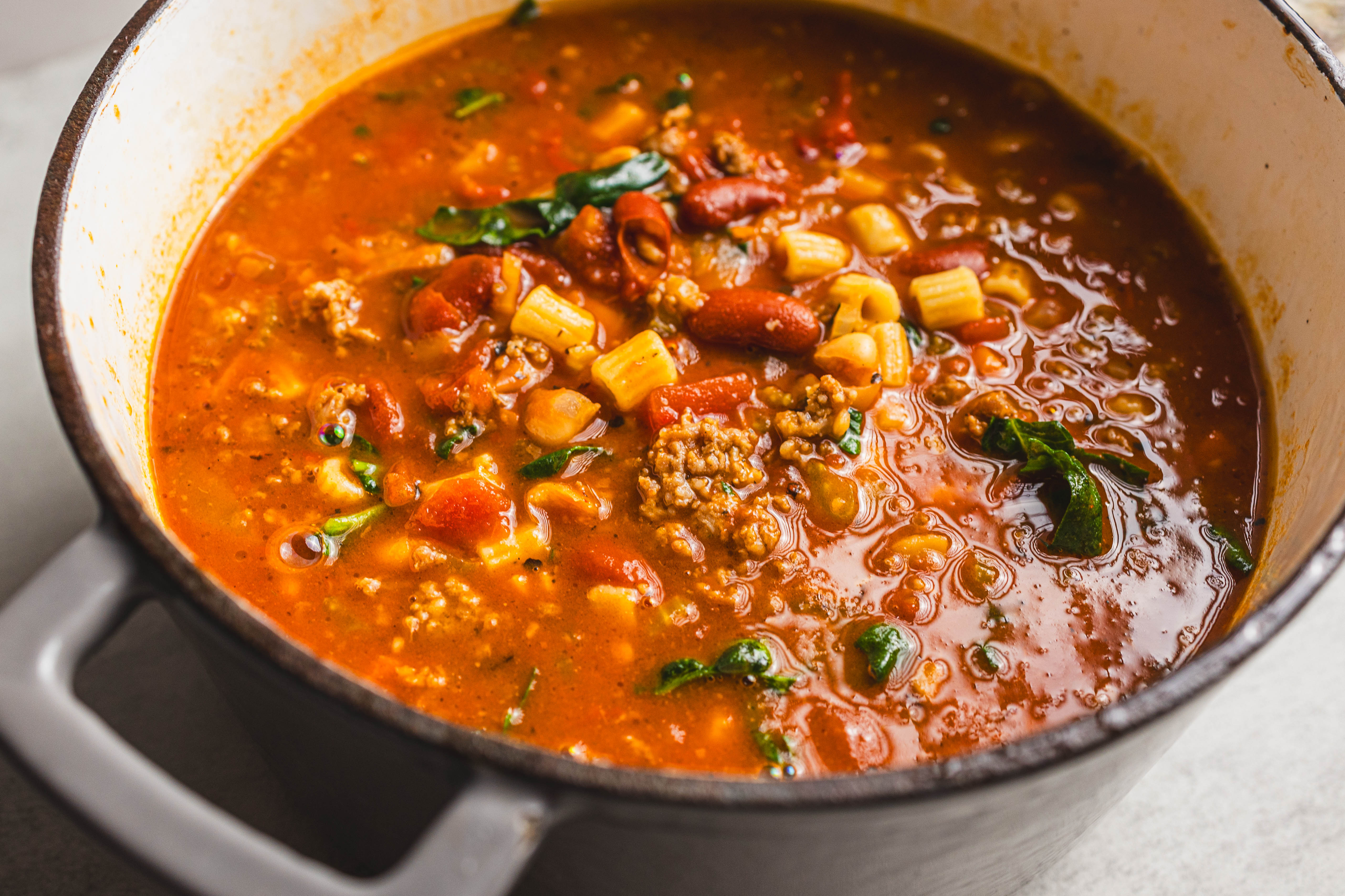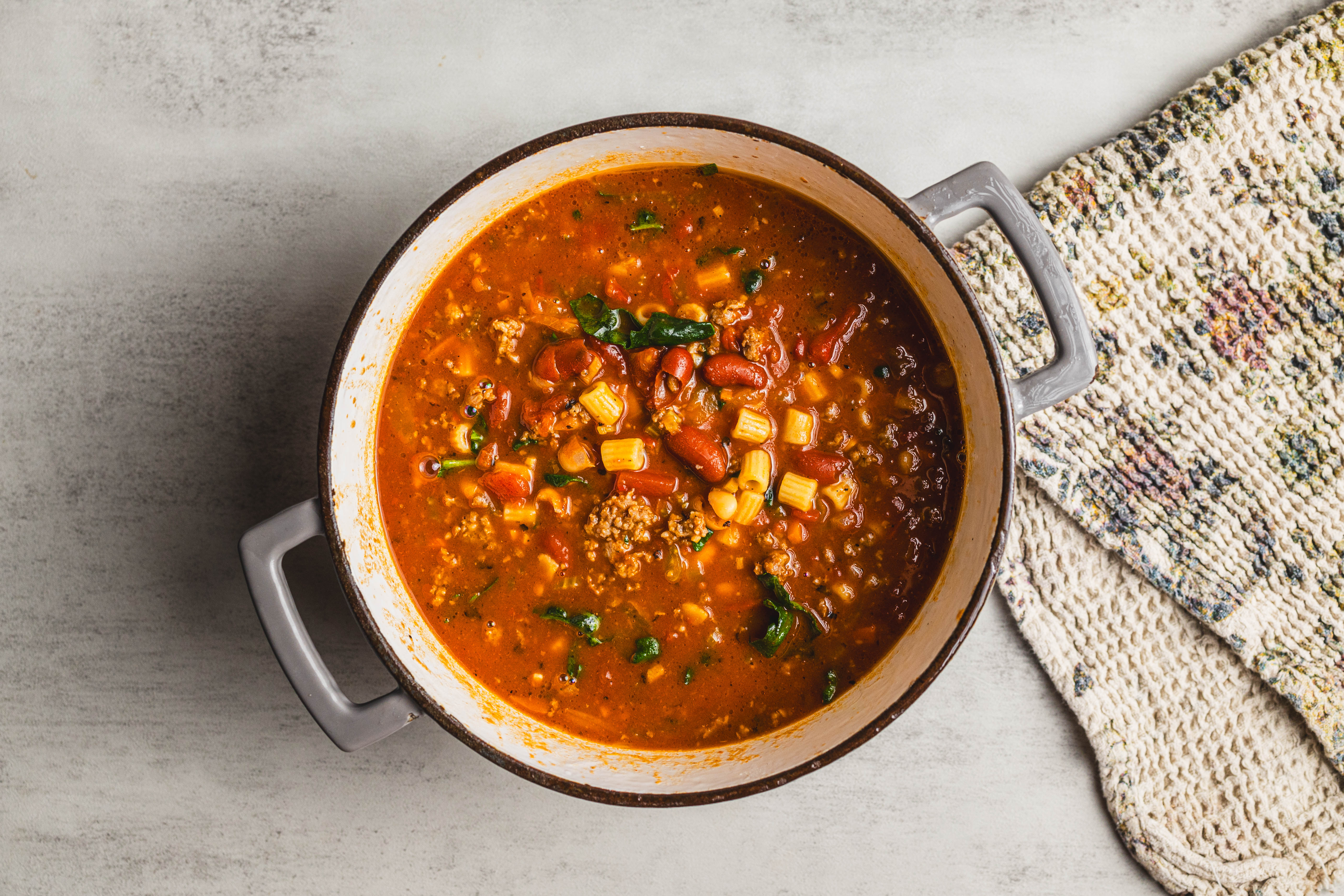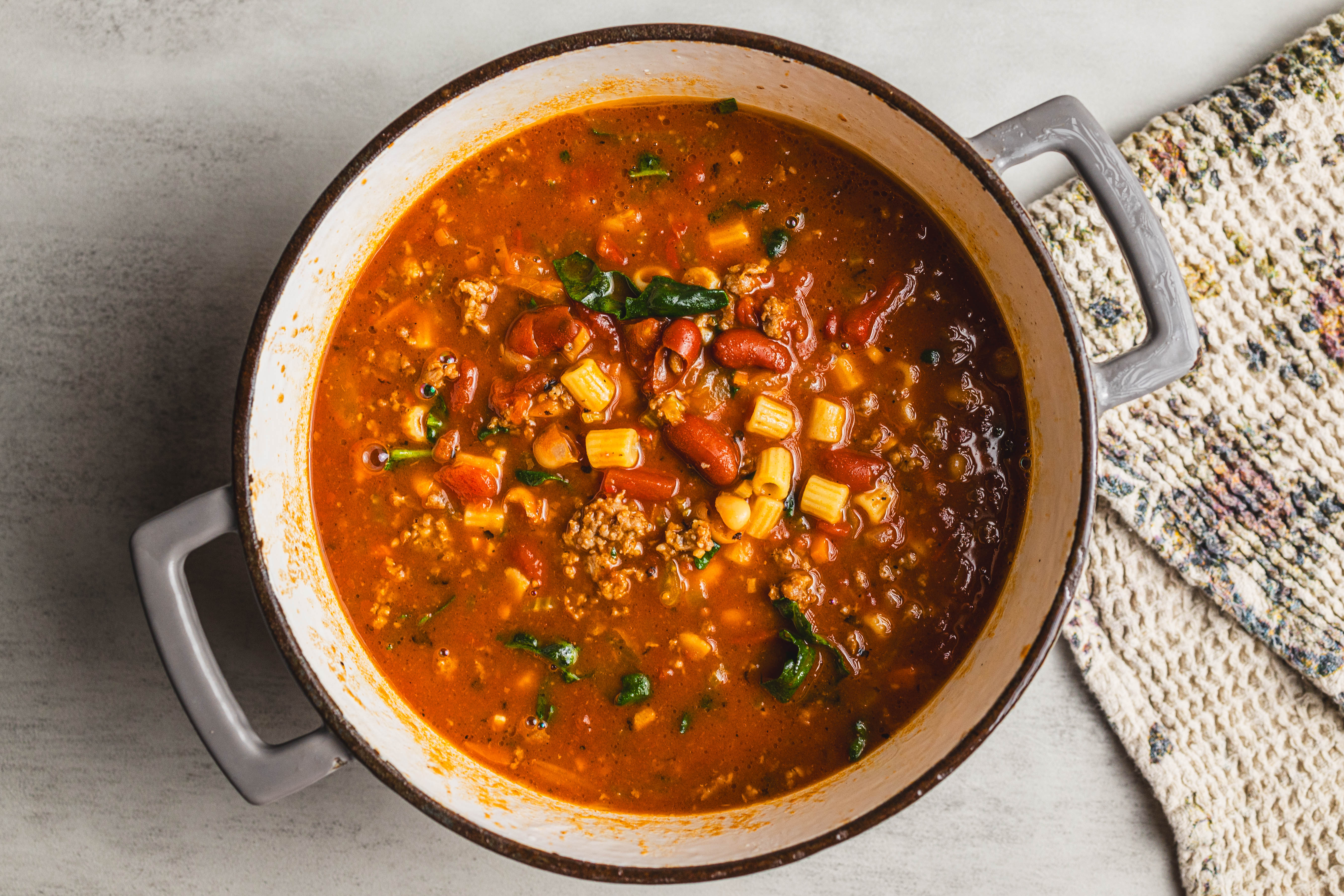 Rest is good for the soul... and so is tasty food. Sunday Soul Soup combines the bliss of both of these by simmering together lots of juicy veggies and spicy sausage in a tomato-based broth that'll make you feel relaxed and refreshed. Think of it as a chili that meets a vegetable soup with an Italian flare. It's yummy, easy, and the best way to start the week. Unwind and enjoy a bowlful of Sunday Soul Soup. It's what you need!