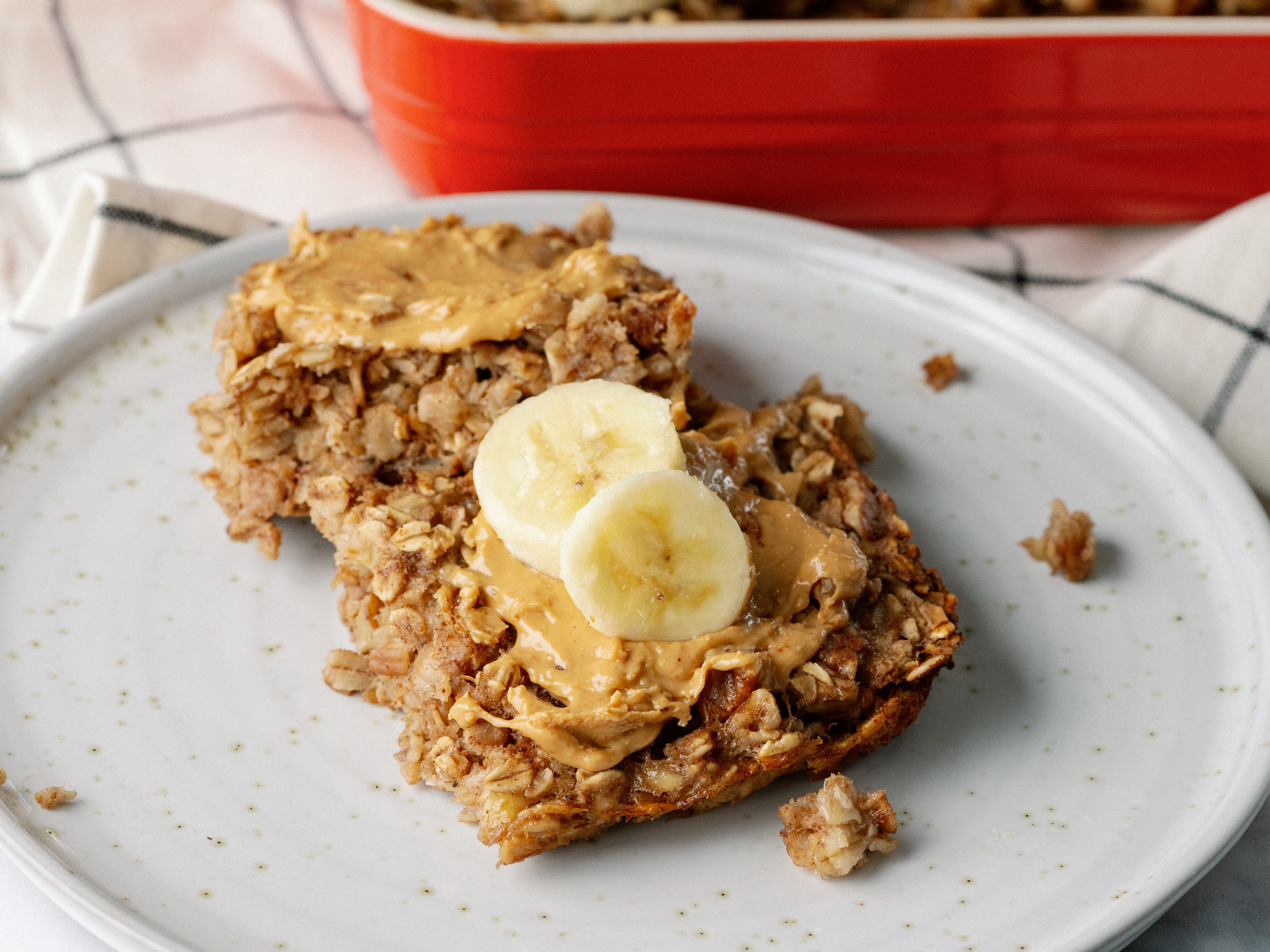 The best baked oatmeal has got to be The Bunch Baked Oatmeal, because it's a bunch of great flavors that will have you bouncing on your feet for a bunch more! The Bunch Baked Oatmeal features tender yet crisp-on-the-outside oats, plenty of creamy goodness, and a bunch of banana flavor baked right in! A little smoky-sweet maple syrup takes everything to the next level, so breakfast can be both nourishing and delicious! It's easy to have a bunch of fun with this breakfast bunch!
