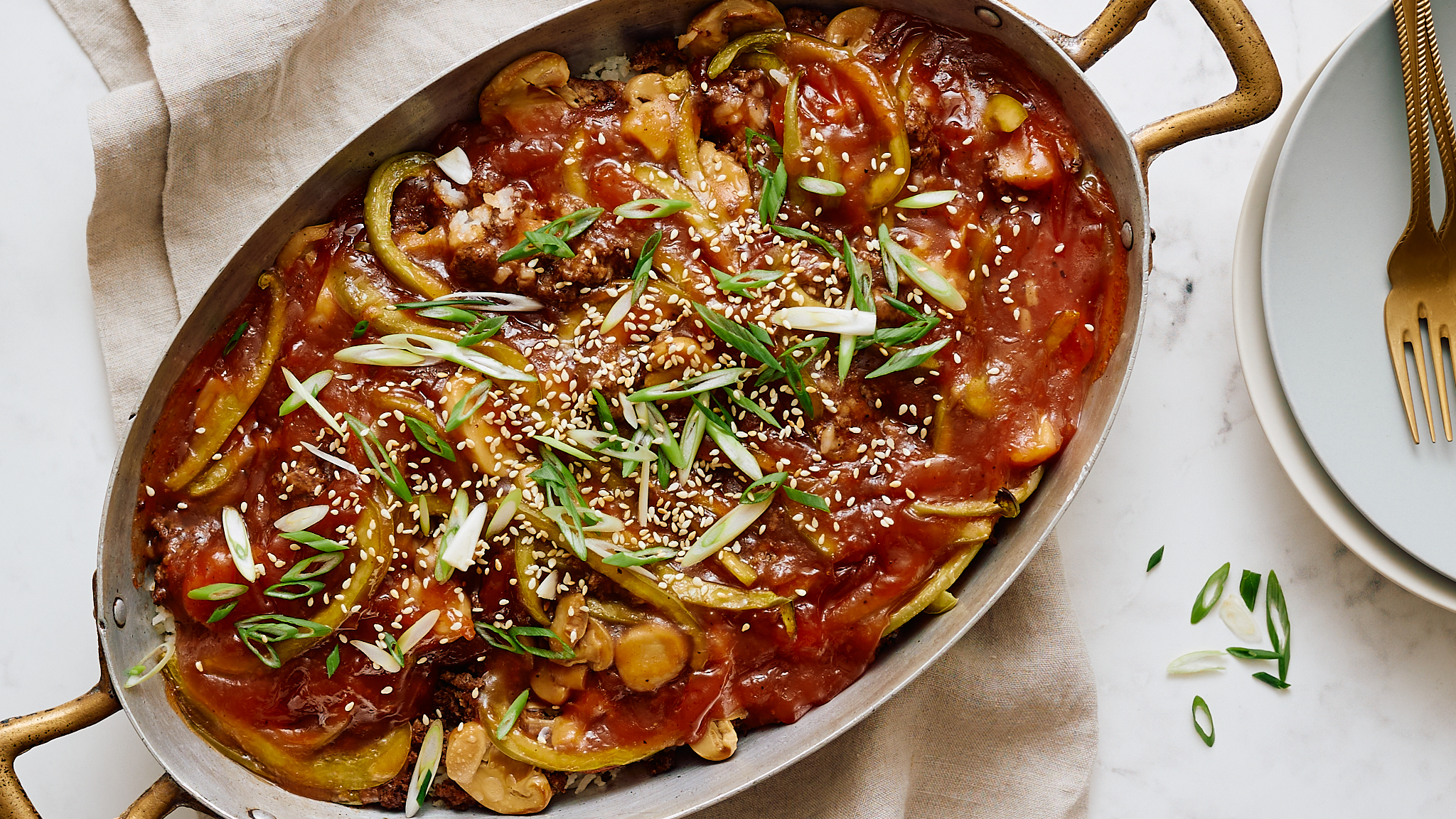 Step 11 -Garnish the bake with the green onions and the sesame seeds and serve.